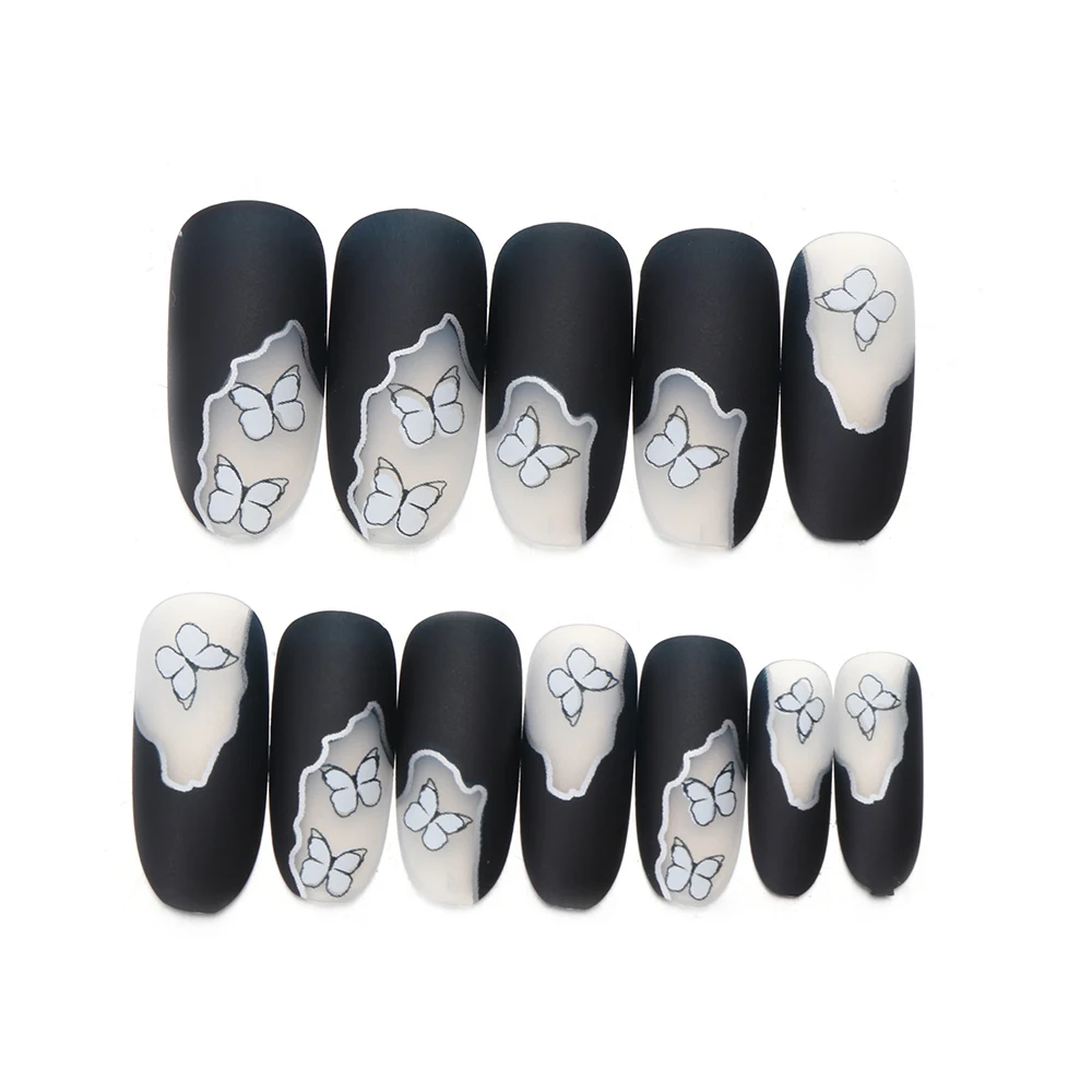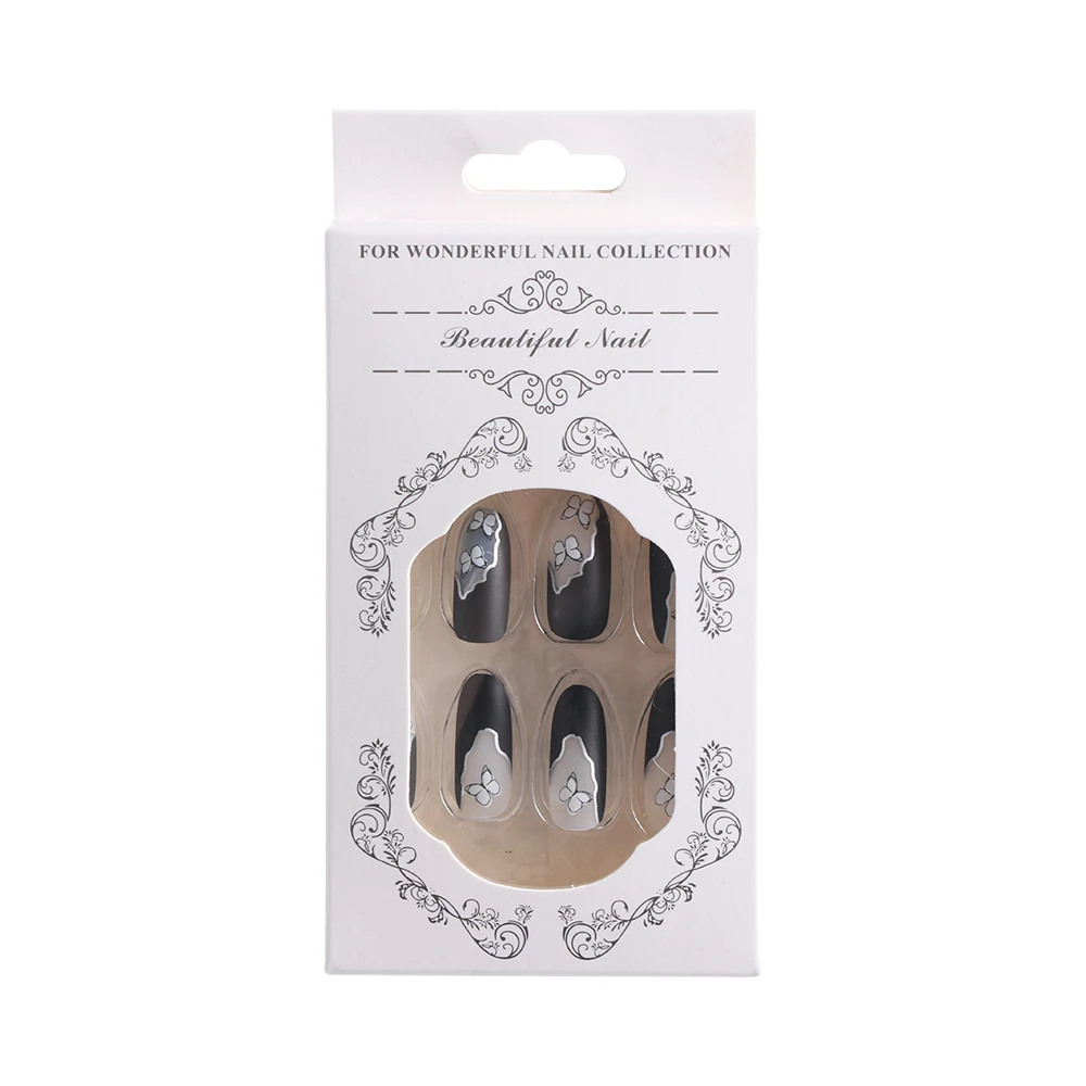 24 шт поддельные ногти с дизайном Черные бабочки накладные ногти ношение полное покрытие нажмите на ногти искусственные ногти АРТ советы с клеем