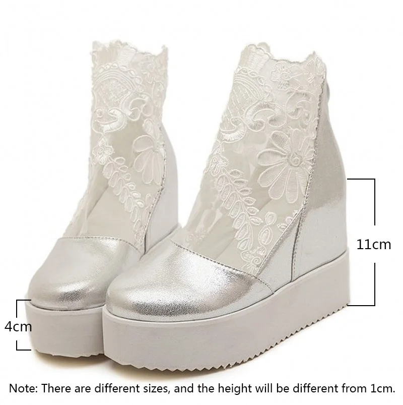 Туфли-лодочки женские кружевные, на танкетке, белые, 34-39, 2021