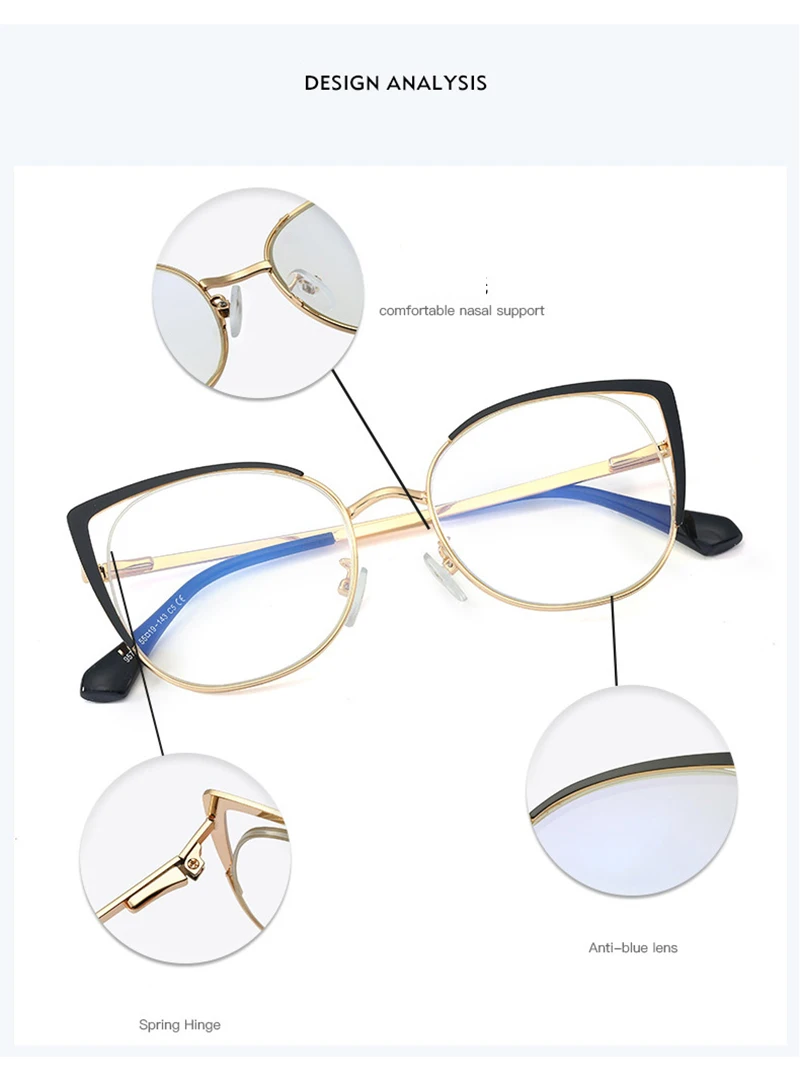 CRIXALIS 2022 Модные женские очки с защитой от синего света, Модные металлические очки кошачий глаз, оптические женские очки для компьютера