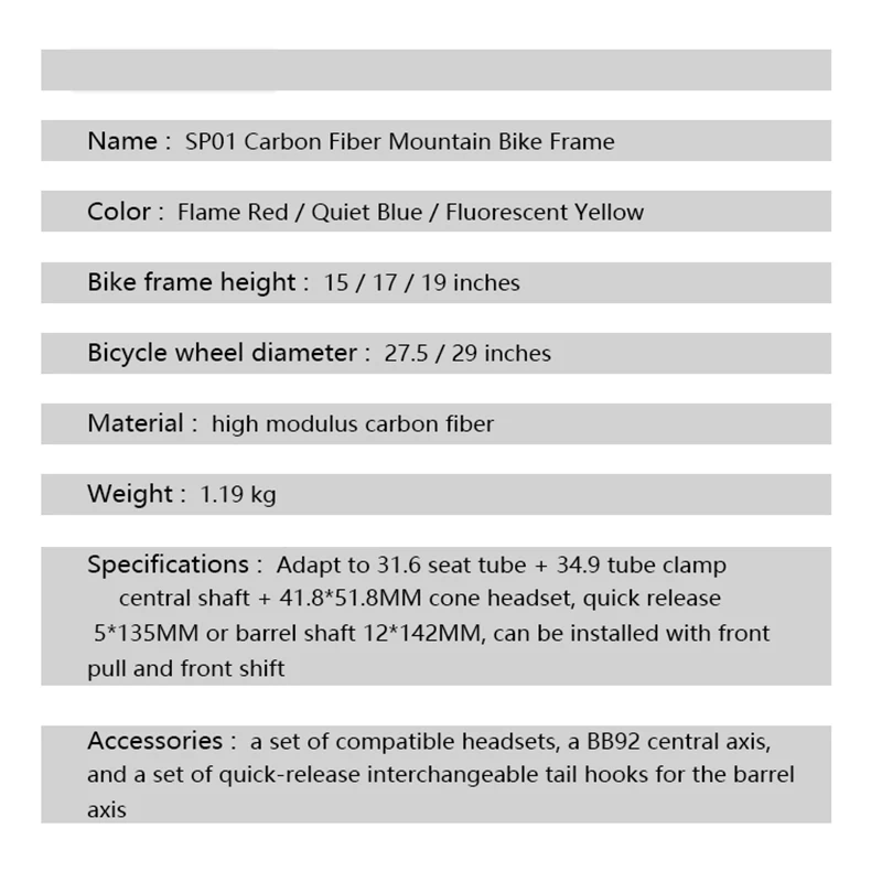 Велосипедная Рама из углеродного волокна SFISH EPIC, горный велосипед из углеродного волокна, рама для горного велосипеда 27,529er 151719 дюймов, запчасти для велосипеда
