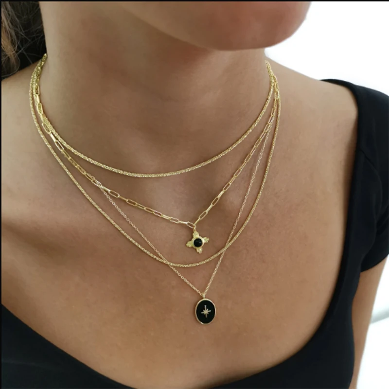 Винтажное многослойное ожерелье из стерлингового серебра 100% пробы...