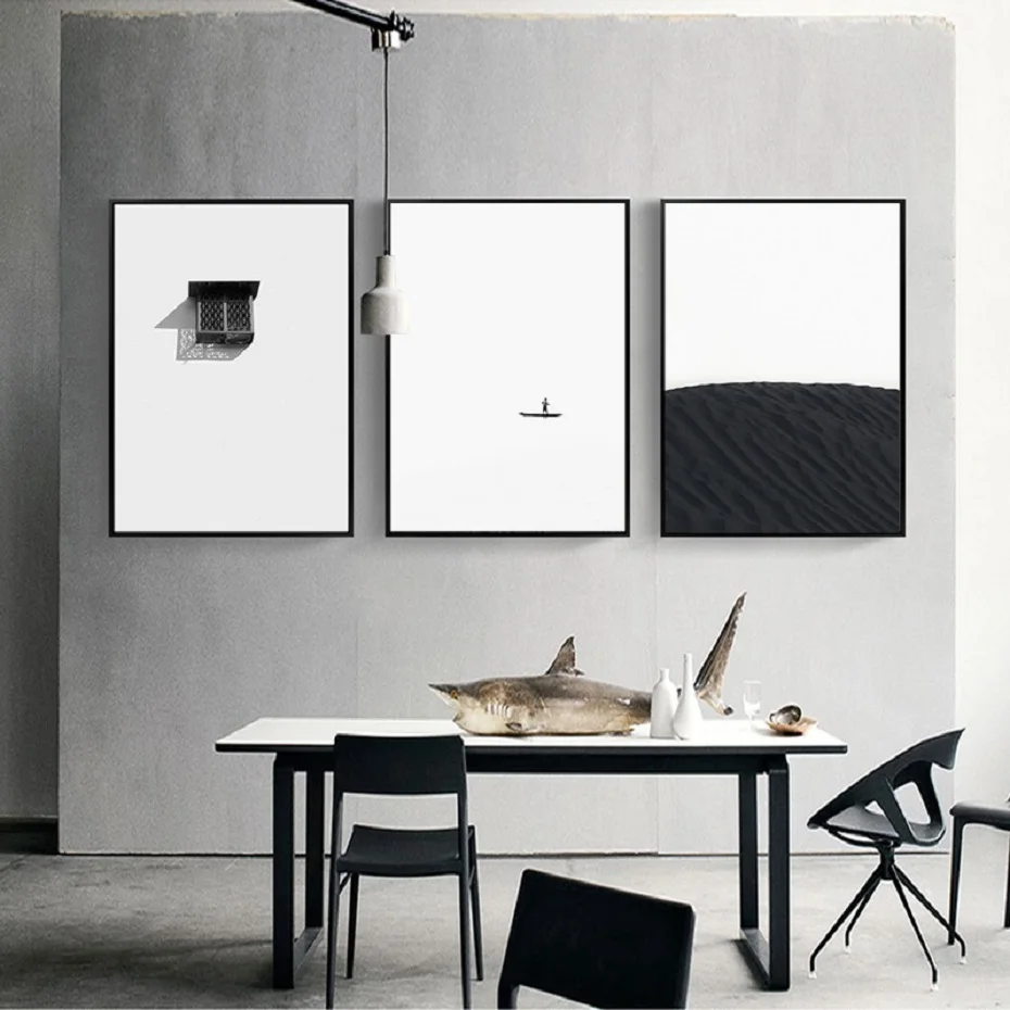 Абстрактный настенный постер черного, белого, серого цветов, пустын...