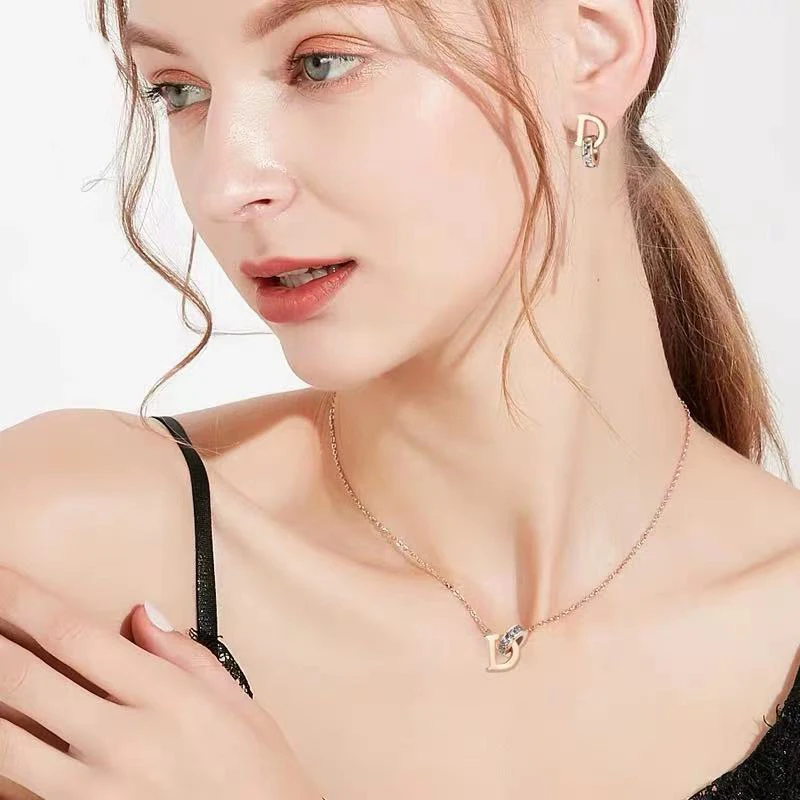 Женское короткое ожерелье из титановой стали, классическое циркониевое колье с буквой D, цепочка до ключицы для девушек, привлекательное ювелирное украшение на шею, новинка 2021
