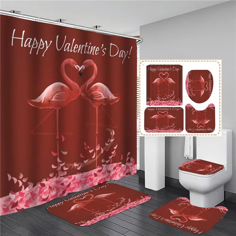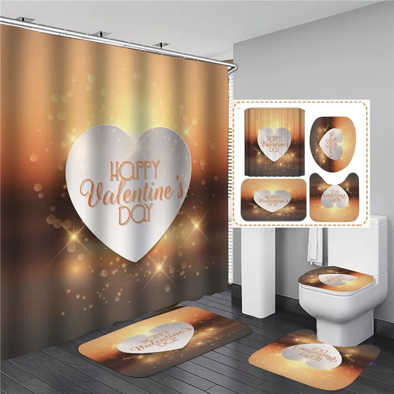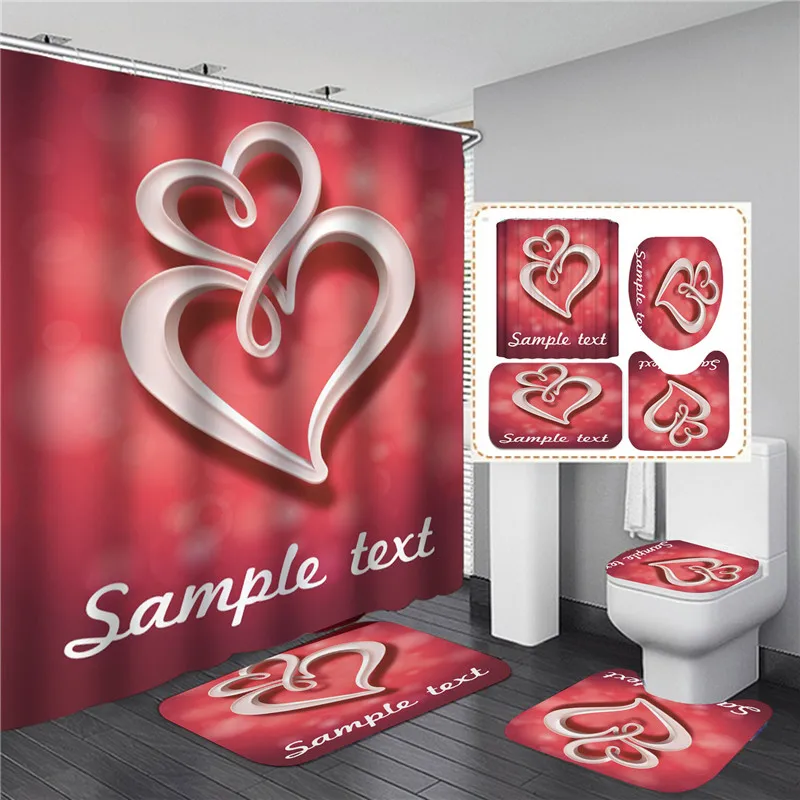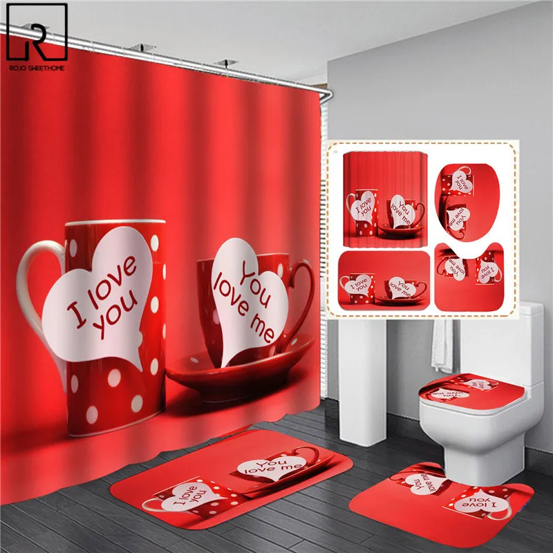Красное сердце любителей душ Шторы, комплект из 4 предметов одежды занавеска для ванной из полиэфира Шторы комплекты пары Современный домашний декор коврики для ванной комнаты Набор противоюзовый ковёр