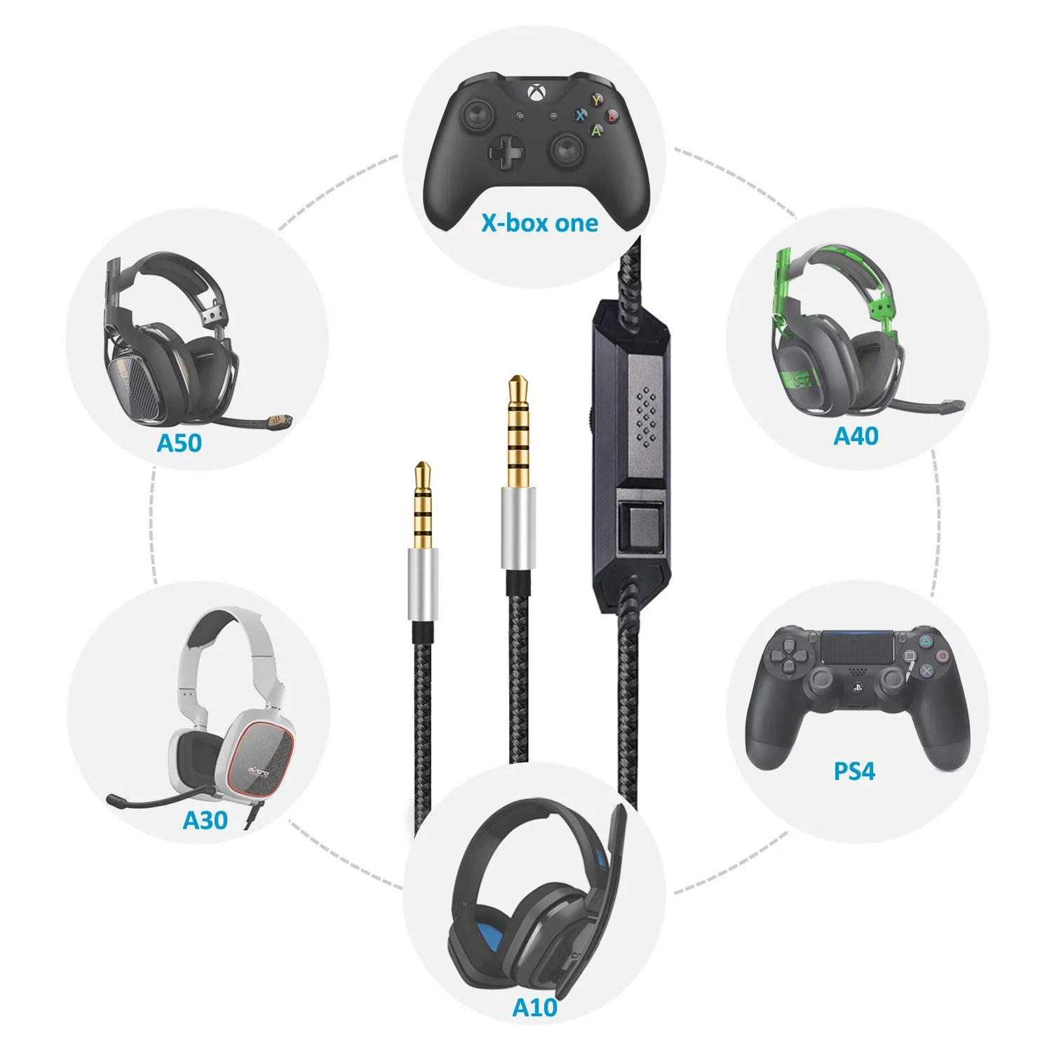 Шнур для замены Astro A10 A30 A40 A50 гарнитура, кабель с объемным Управление и встроенный немой Функция, 2,0 м 6.5Ft, прочный плетеный кабель совместим с Xbox One Play Station 4 PS4 через 3,5 мм Jack