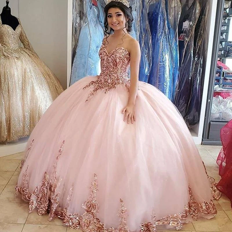 Расшитое золотистым кружевом Бальные платья бальное платье для выпускного вечера сладкий 16 платье светится в течение 15 лет корсет платье для девочки Пышное Платье размера плюс