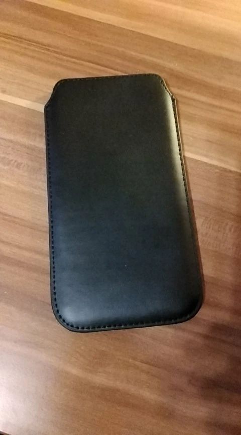 La funda no es de cuero, es de plástico de una calidad pobre y muy estrecha por lo que solo se puede introducir el móvil si no lleva funda trasera.