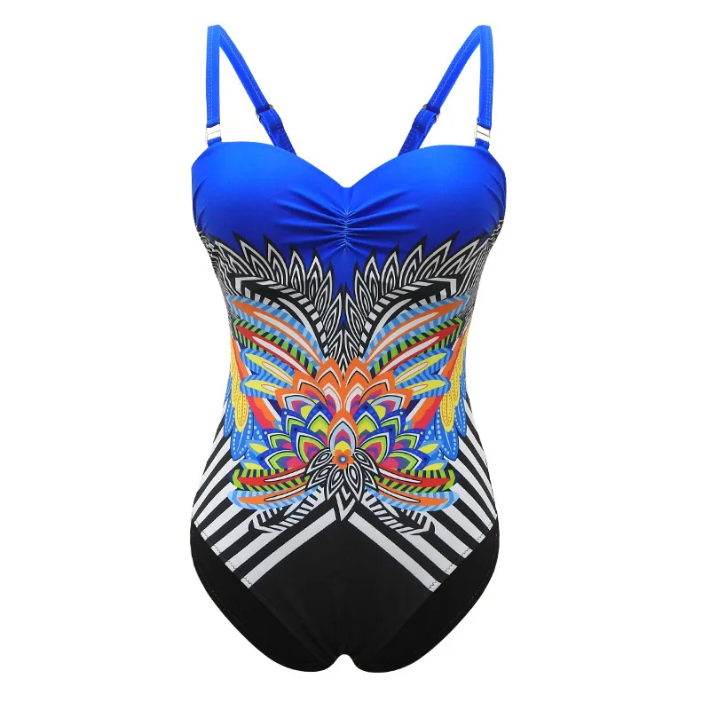 Женский Цельный купальник с цветочным принтом, закрытый купальник пуш-ап, размера плюс