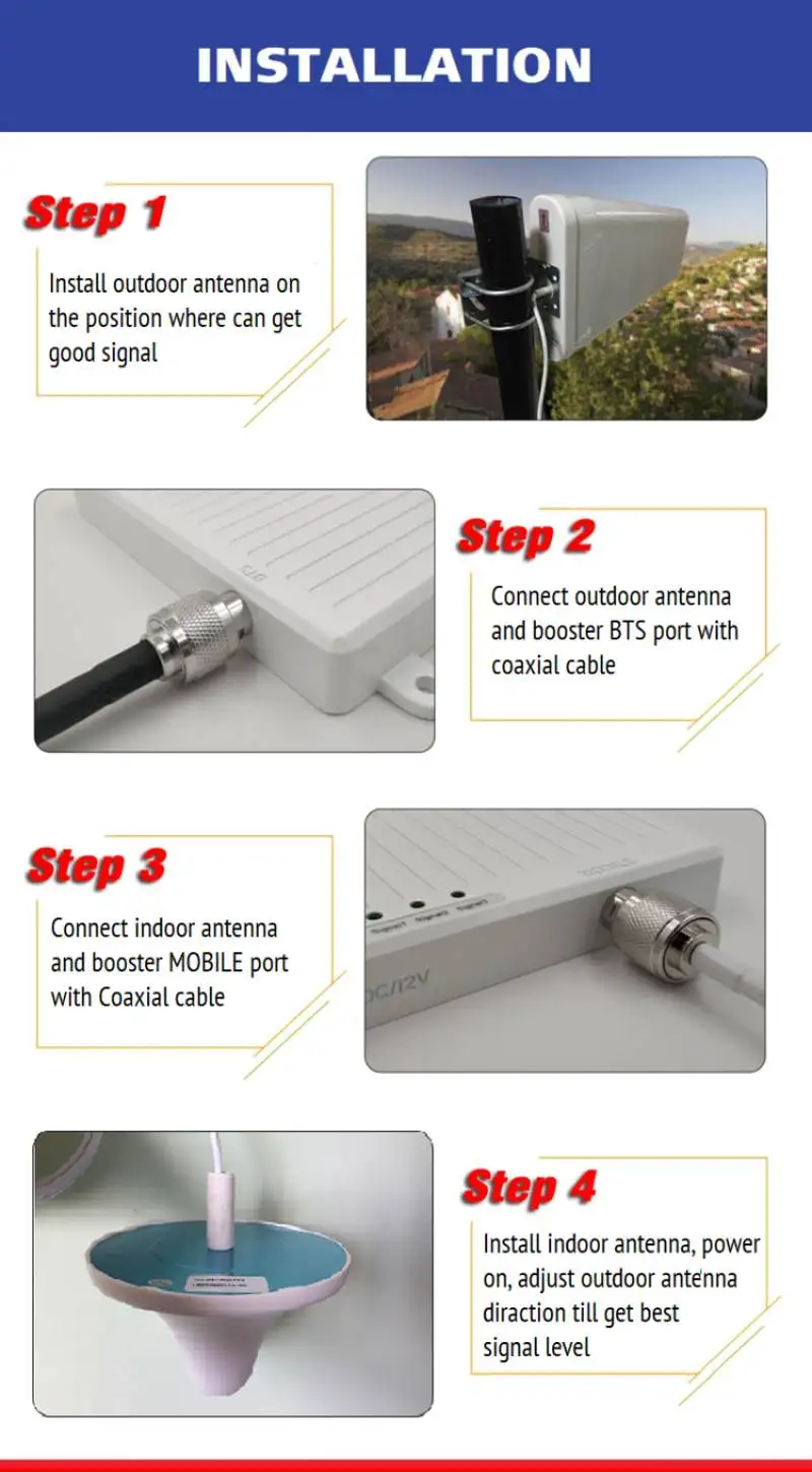 -Рабочая частота:800 LTE: 832 ~ 862 МГц; 791 ~ 821 МГц900 GSM: UL:890 ~ 915 МГц; DL:935 ~ 960 МГц;1800 DCS: UL:1710 ~ 1785; DL:1805 ~ 1880 МГц;2600 IMT: UL 2500- 570, DL 2620-2690;-Рабочий диапазон:Полоса 20 4G LTE plus FDDПолоса 3 для данных 4G LTEПолоса 1 для 3G wcdma UMTSПолоса 7 для 4G FDD LTE plus-Усиление: 75 ~ 80 дБ-Мощность: 25 ~ 27 дБм-Покрытие: 1000 ~ 1500 квадратных метров