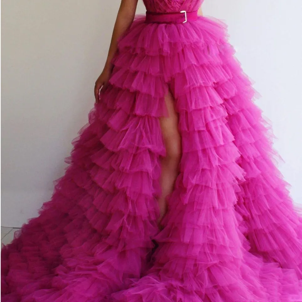 Новая пышная модная юбка из фатина фуксия jupe многоуровневые тюлевые юбки для женщин с длинным женские юбки 2021 юбки-пачки на заказ бальное платье