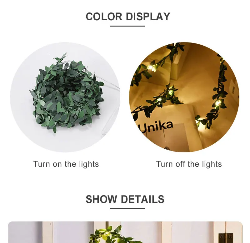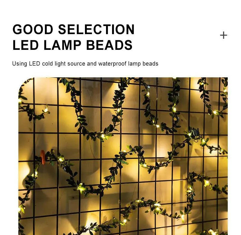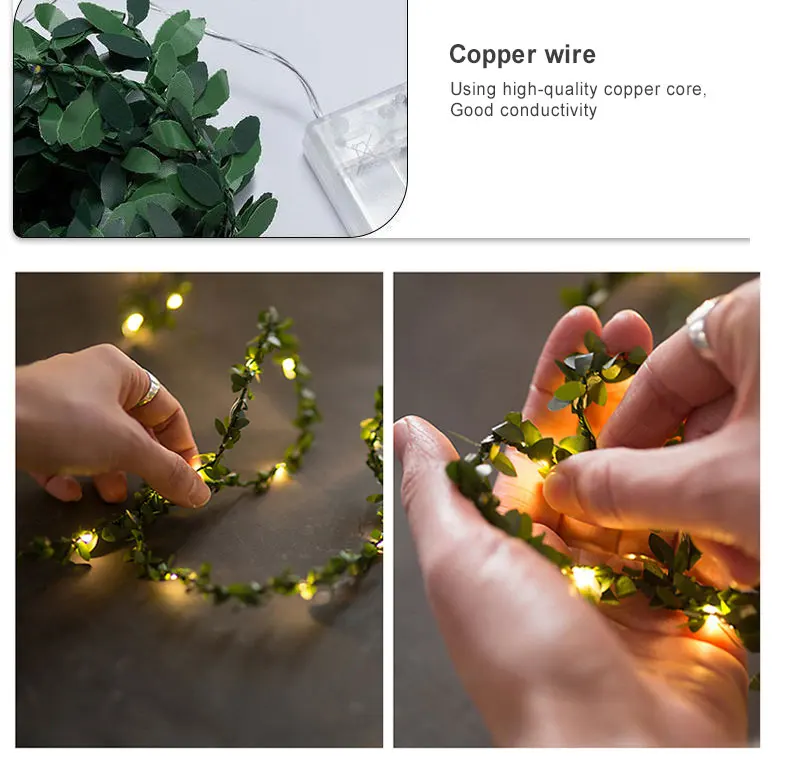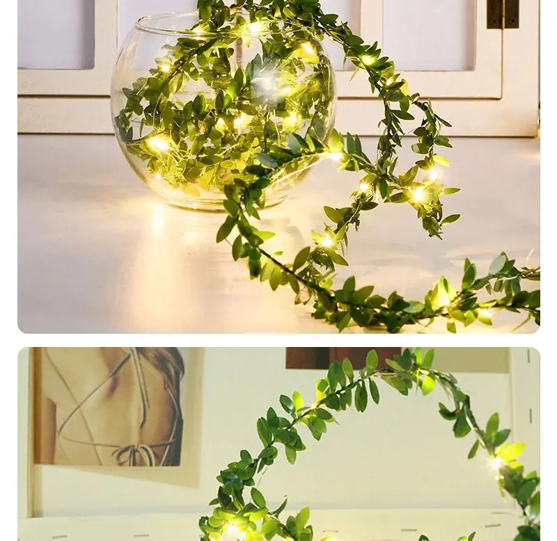 Светодиодный светильник, зеленый листья ротанга, гирлянда для фестиваля, украшения из медной проволоки, гирлянда, рождественские украшения
