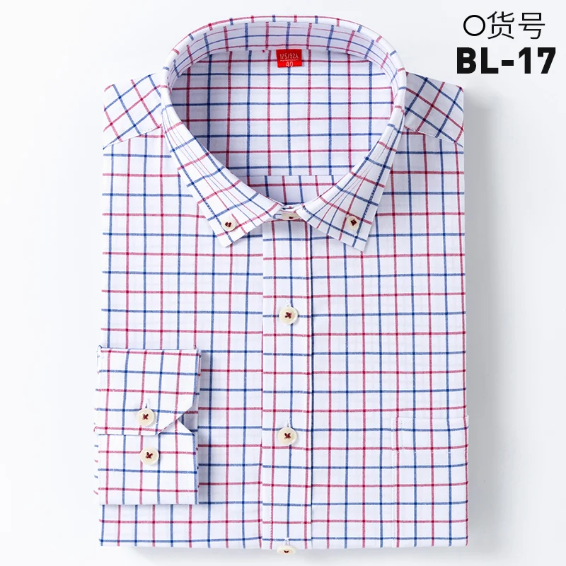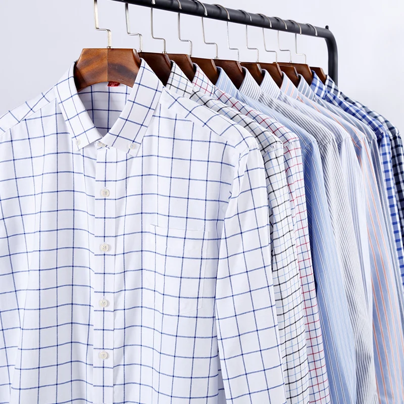 Рубашка мужская повседневная в клетку, Классическая в полоску, с длинным рукавом, на пуговицах, деловая уличная одежда из ткани Оксфорд, для среднего возраста, Корейская одежда
