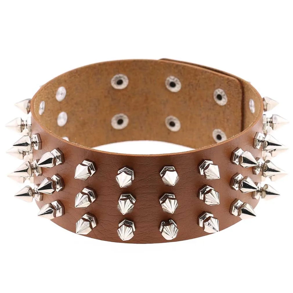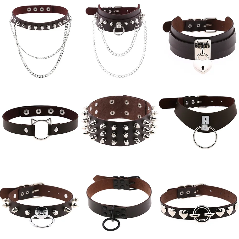 Женское Ожерелье-чокер из коричневой кожи, винтажное ожерелье с шипами в готическом стиле, ожерелье в стиле панк для косплея, ювелирные изделия для подарка