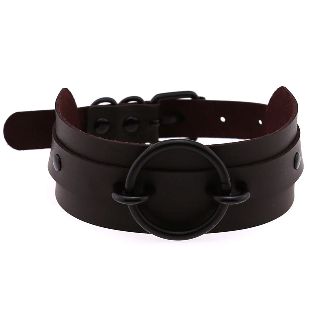 Женское кожаное ожерелье ZIMNO, черное ожерелье в стиле «Харадзюку» с круглым металлическим кольцом, Ювелирное Украшение для ночного клуба