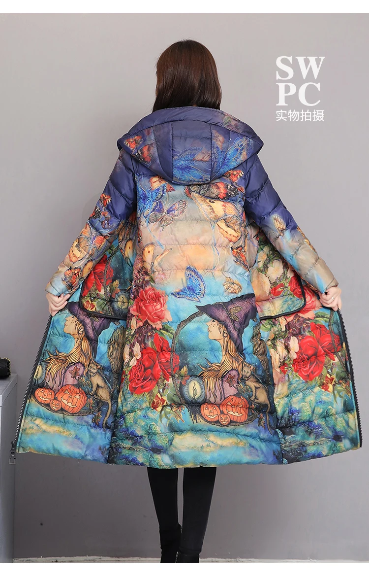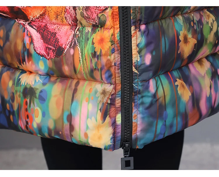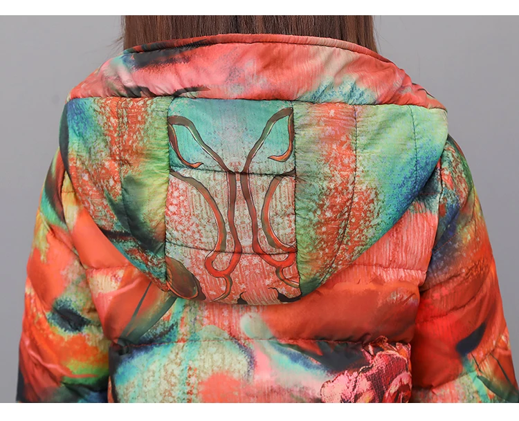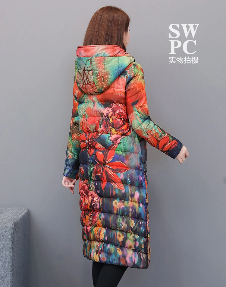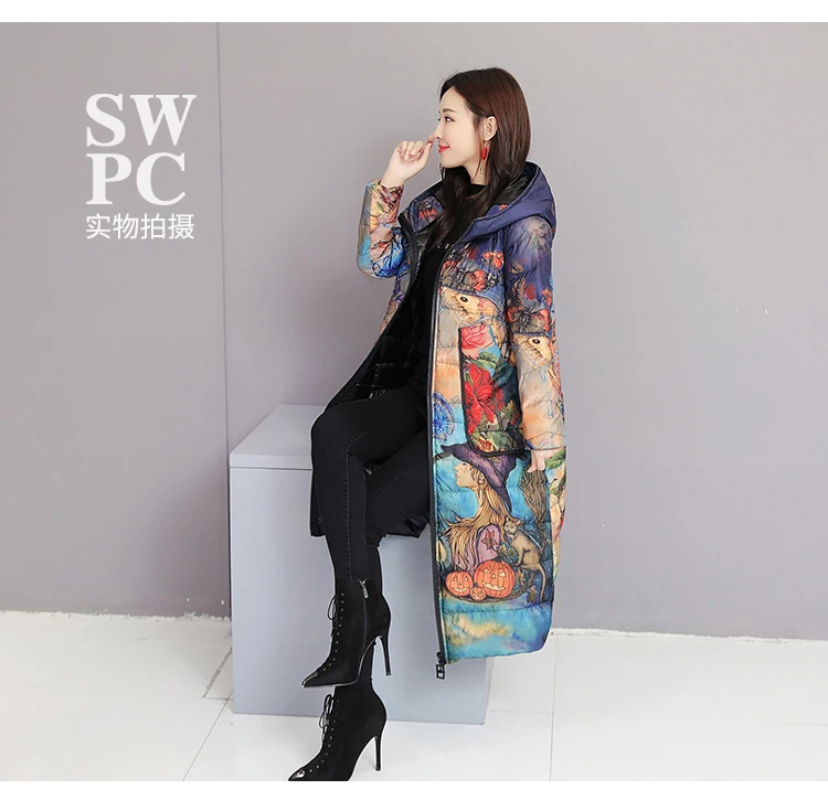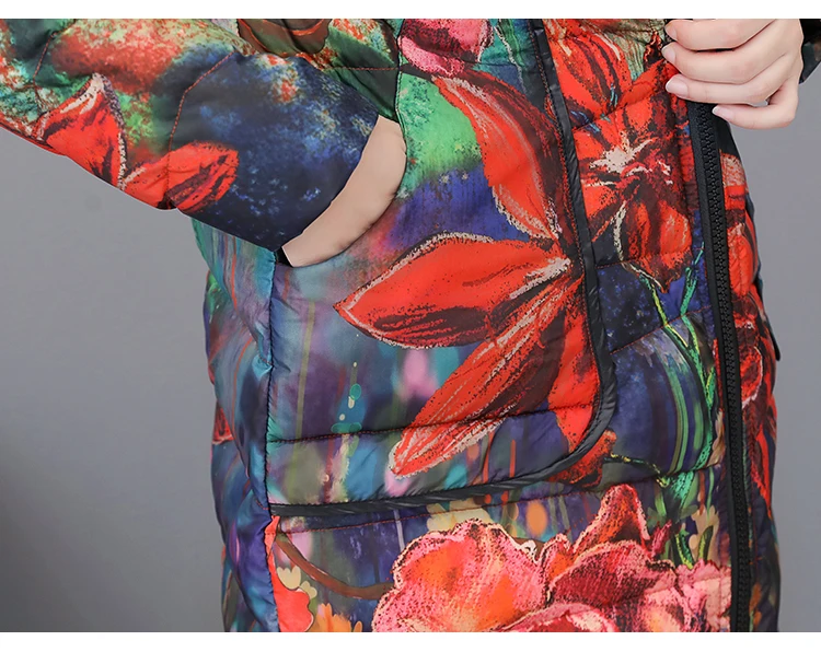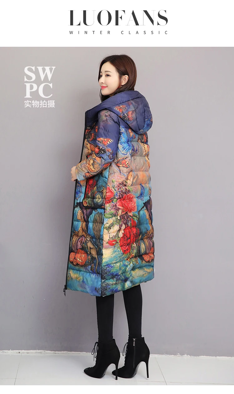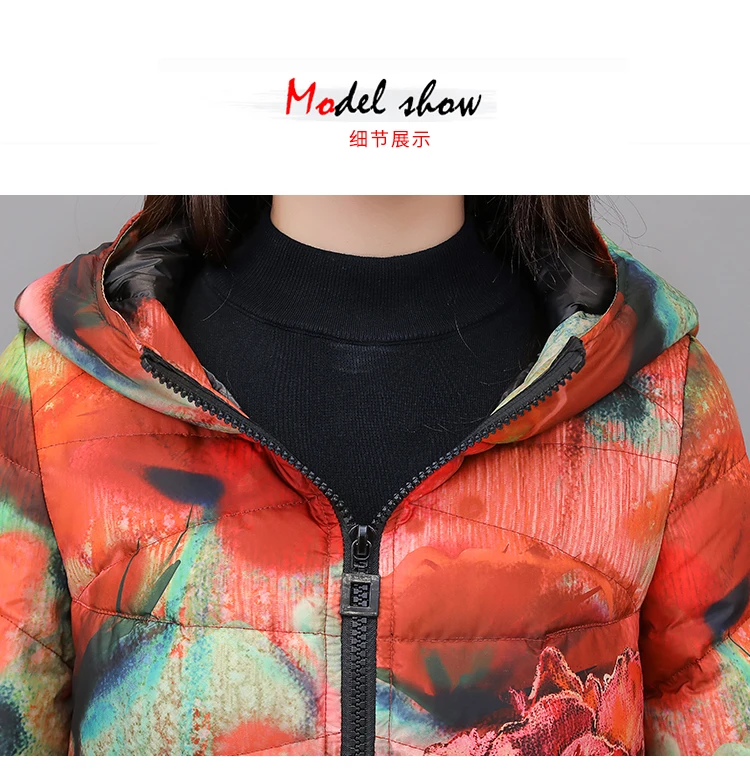 Женский пуховик, зимнее пальто с цветочным рисунком, длинная парка с капюшоном, 2021, 6XL, 1858