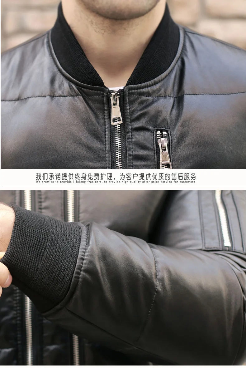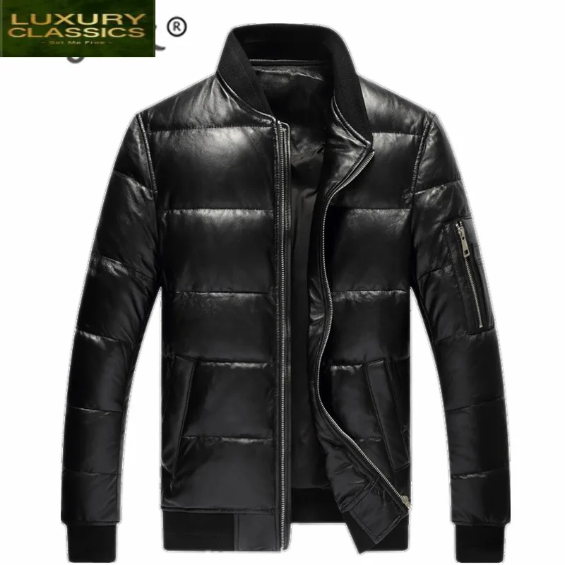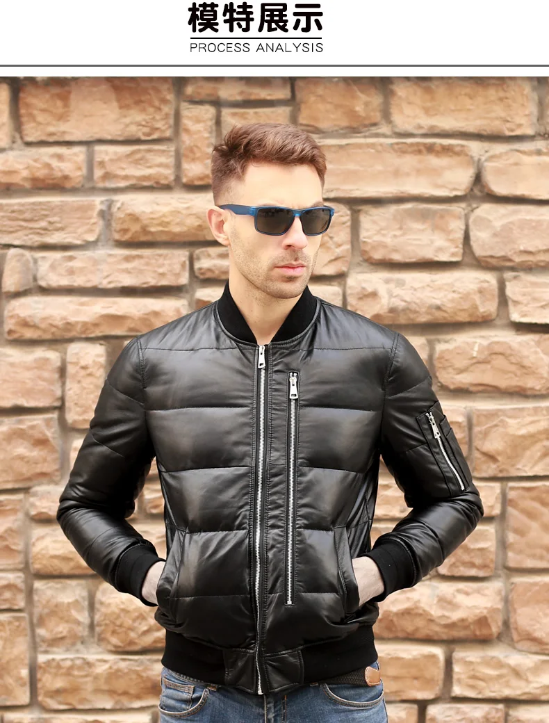 Мужские Зимние Теплые Куртки из натуральной кожи на белом утином пу...