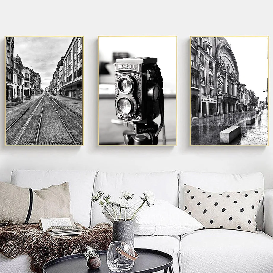 Винтажная камера Женская церковь черная белая настенная Картина на ...