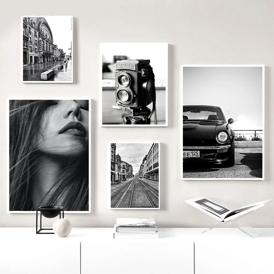 Винтажная камера автомобиль женщина черная Белая настенная Картина ...