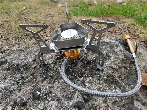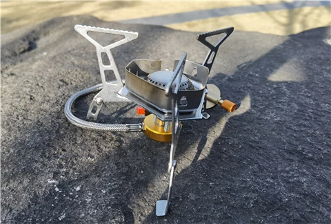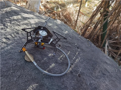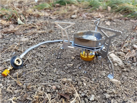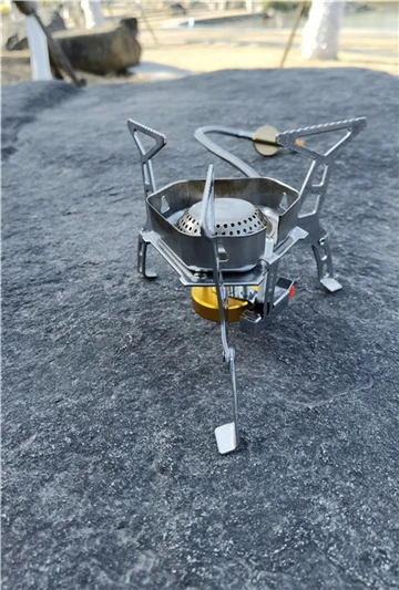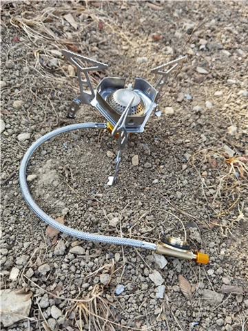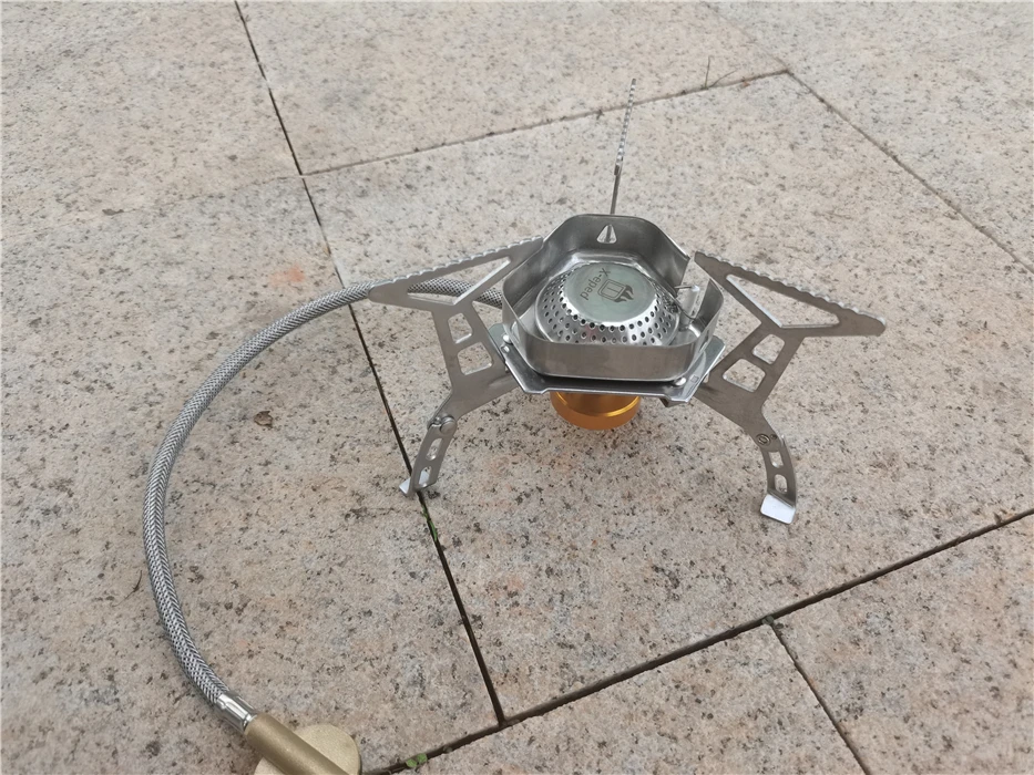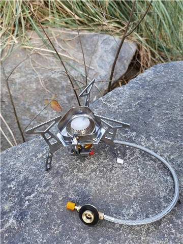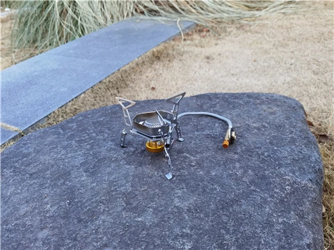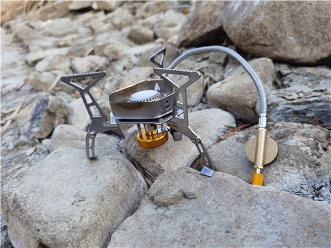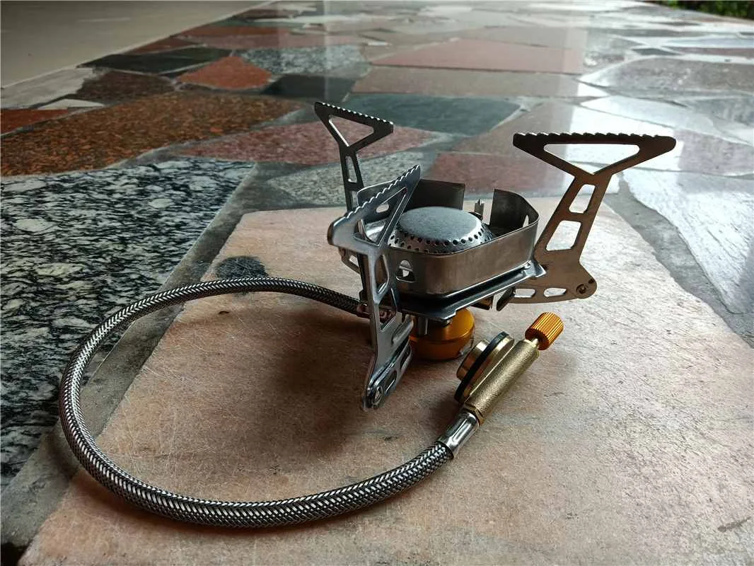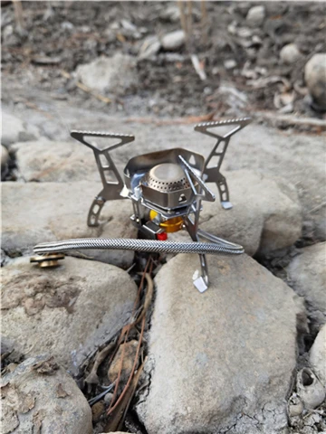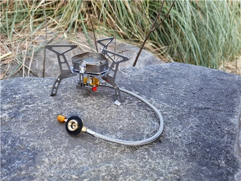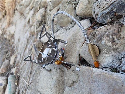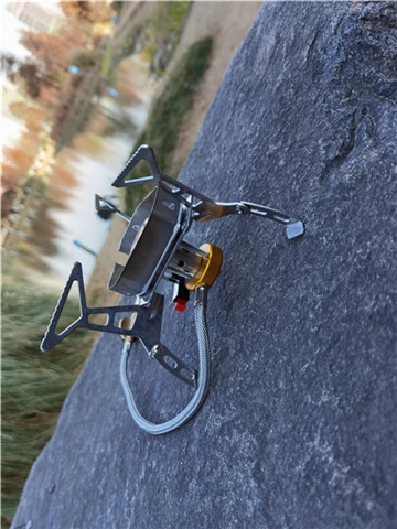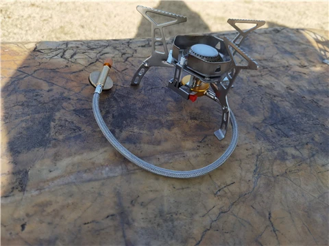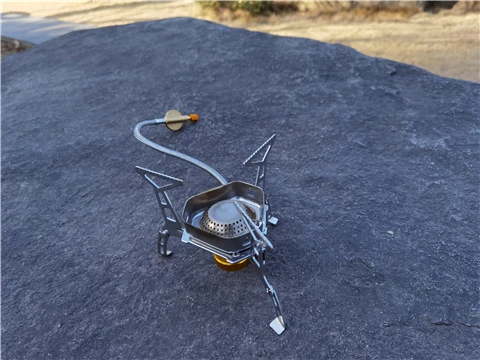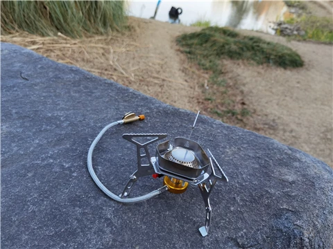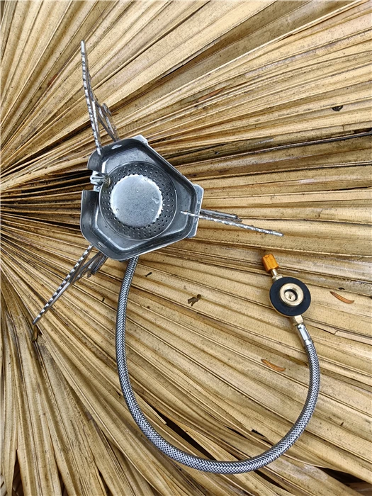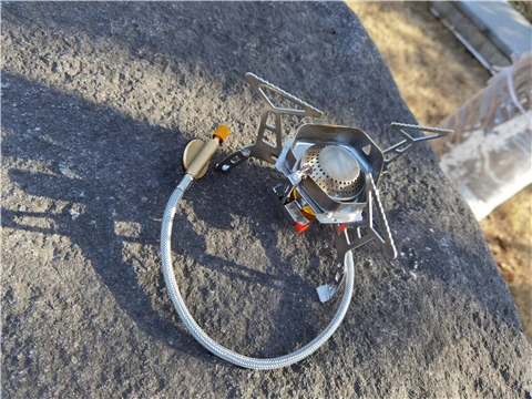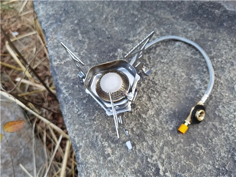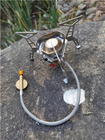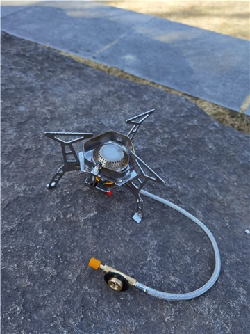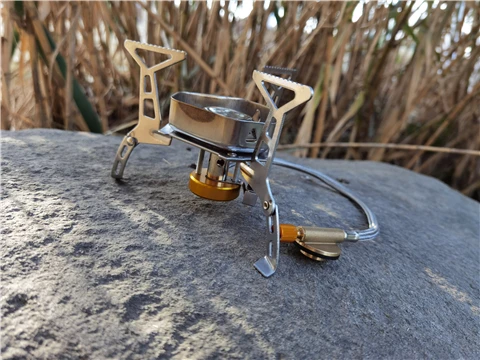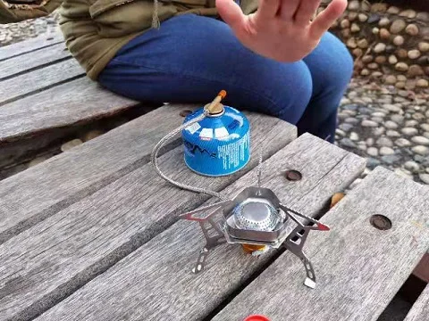 Зажигание газа очень практично. Простота использования и занимает мало места в рюкзаке. Я смог протестировать адаптер газа, который поставляется с, он позволяет использовать бутылки газа кемпинга-клапан газа или все другие бутылки с клапанами (без винтов).