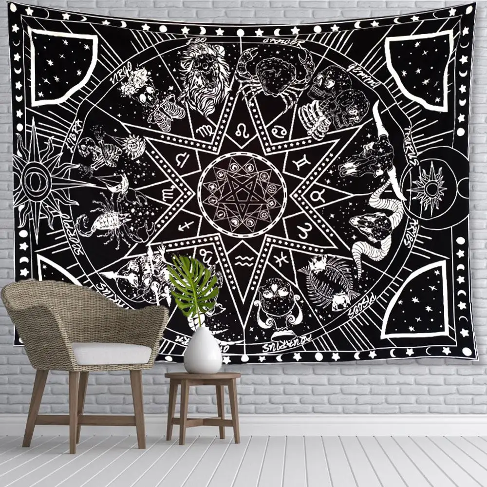 Черный Триппи Гобелен Мандала настенный солнце и луна звезды Таро психоделический тапиз хиппи украшение для дома гобелен настенная ткань