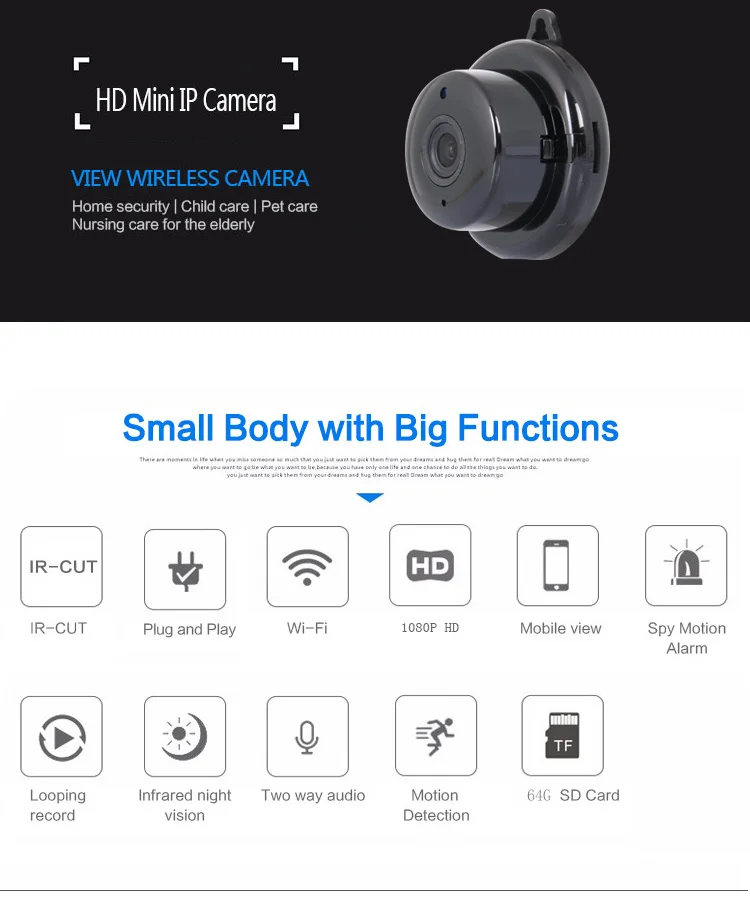 Мини Wi-Fi IP-камера HD 1080P Беспроводная внутренняя камера ночное видение двухстороннее аудио Обнаружение движения Радионяня V380