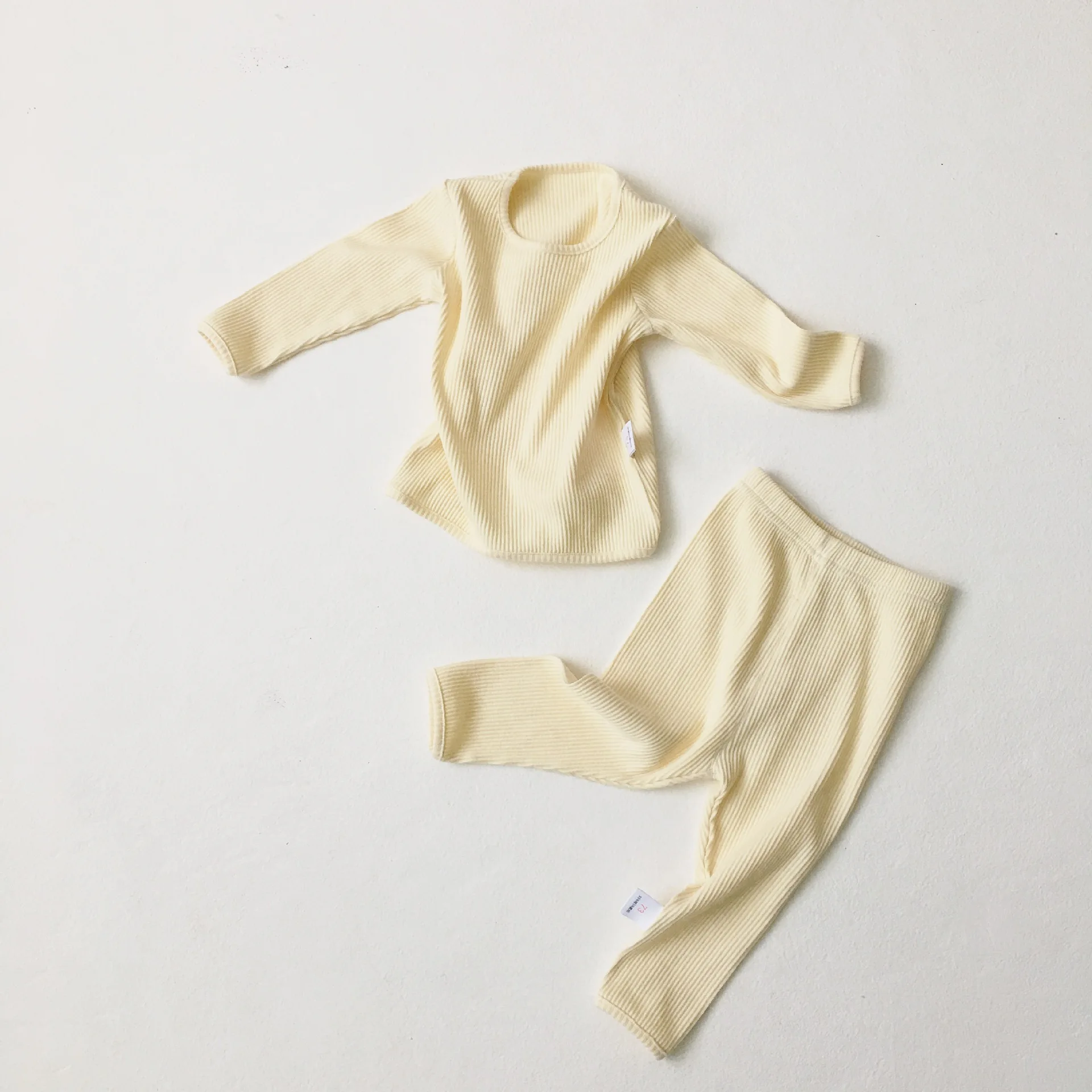Детская приталенная пижама в рубчик, детский хлопковый топ для маленьких мальчиков и девочек + штаны, комплекты одежды, осенняя одежда, одежда для сна, ночная рубашка