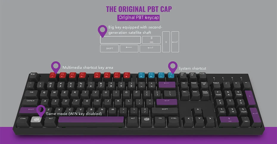 1, Германия родная вишня MX машинная ось тела. 2, крышка для ключа PBT-чувствовать себя комфортно. 3. Большой ключ использует спутниковую ось второго поколения. 4, полный ключ NKRO. 5, совместим с различными поддержкой запястья.