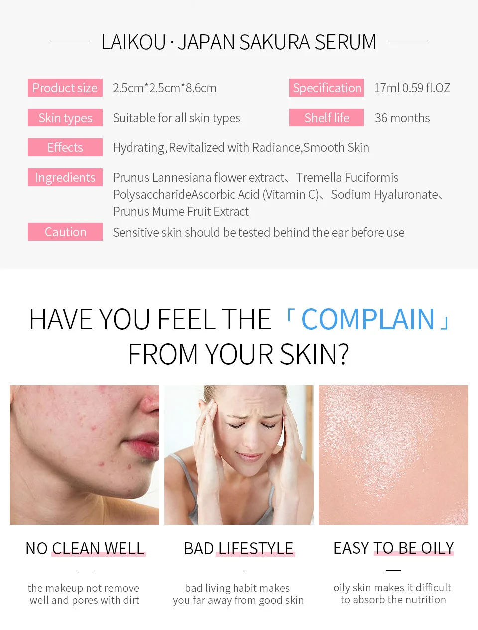 Сыворотка LAIKOU японская с экстрактом сакуры, жироустойчивая Антив...