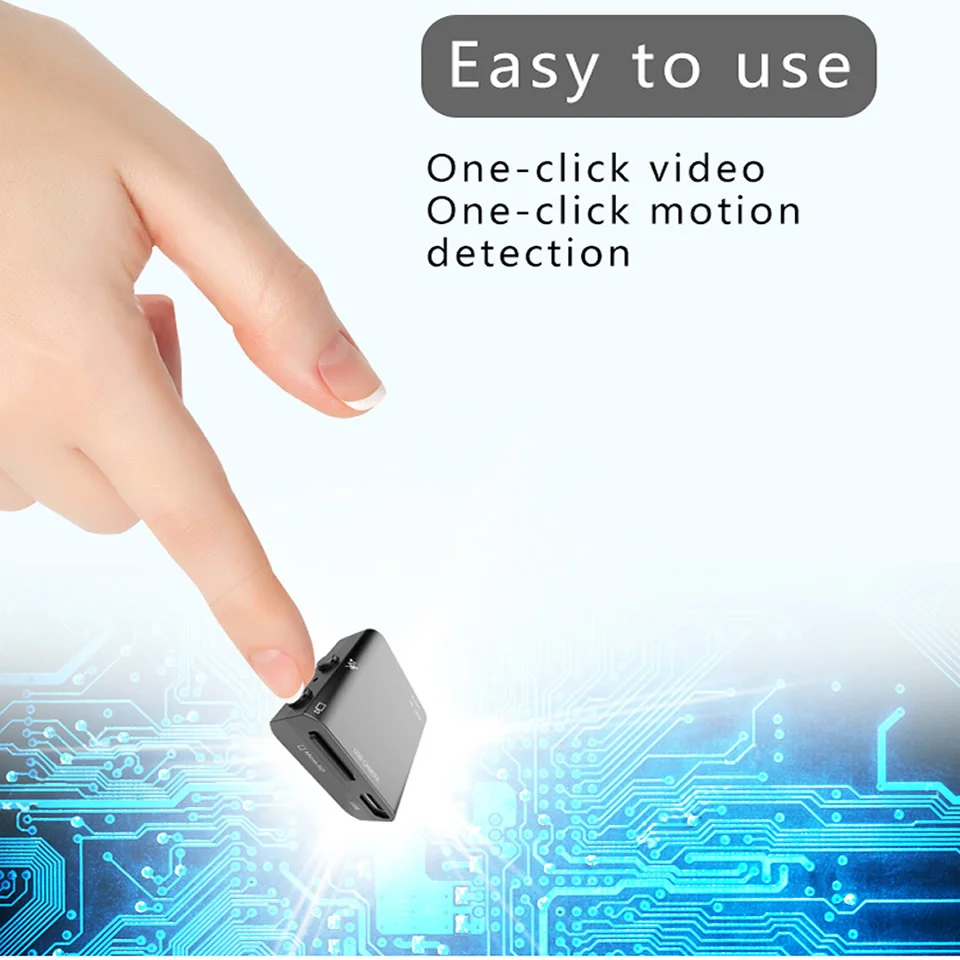 1 Самая маленькая камера, всего 2,9x1,1x2,9 см, удобнее снимать.2 HD 1080P, изображение более четкое, более яркие цвета.3 два 5*8 мм ночного видения свет s, 940нм лампы, без света en, запись без вспышки, расстояние ночного видения может до 5 метров.4 IR-CUT, активировать/деактивировать ночное видение автоматически, при изменении окружающей среды.5. Очень прост в использовании, видео одним нажатием, обнаружение движения одним нажатием.6 циклических видео, можно включать и выключать.7 метка времени может показать или не показать.Спецификация: