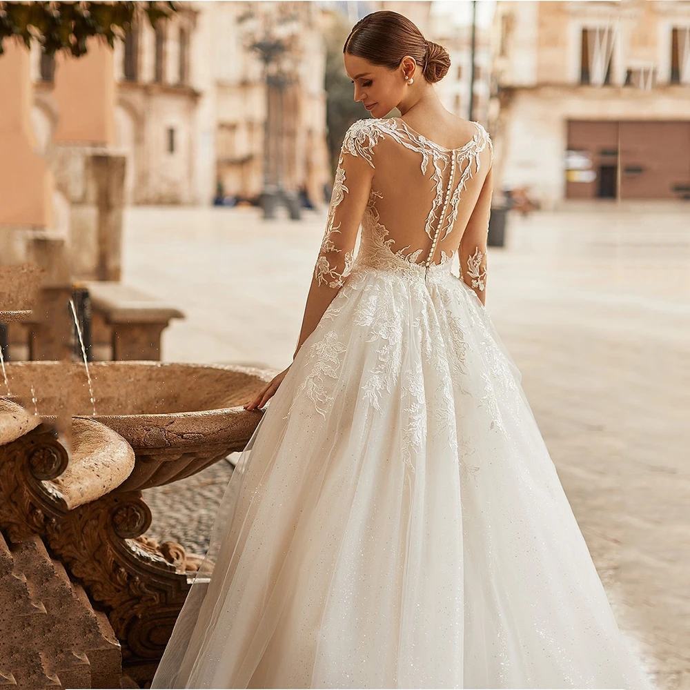 Женское свадебное платье с блестками UZN, элегантное ТРАПЕЦИЕВИДНОЕ платье цвета слоновой кости с полурукавами, кружевные аппликации для выреза