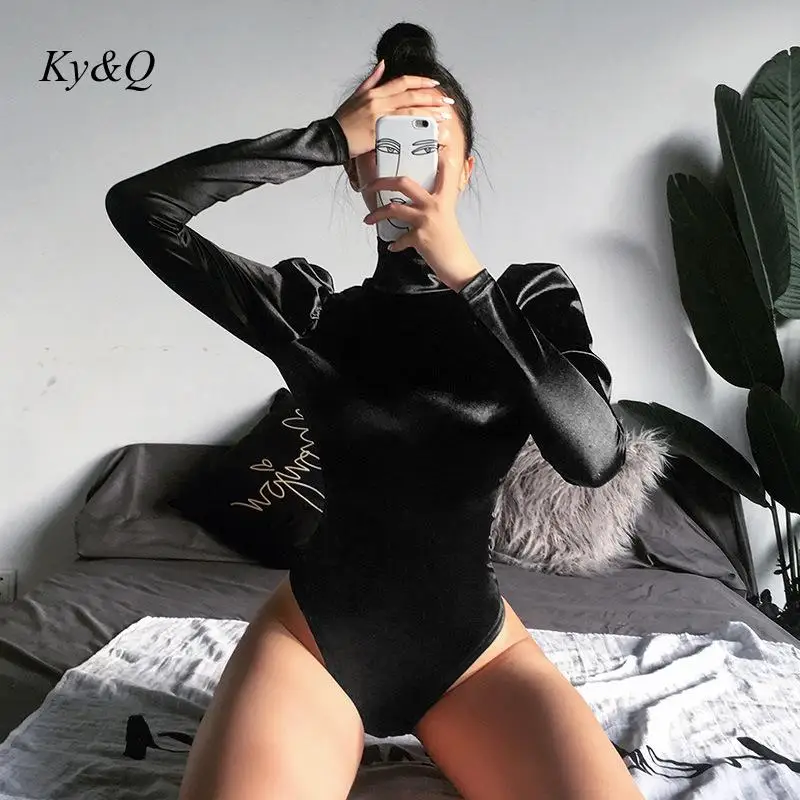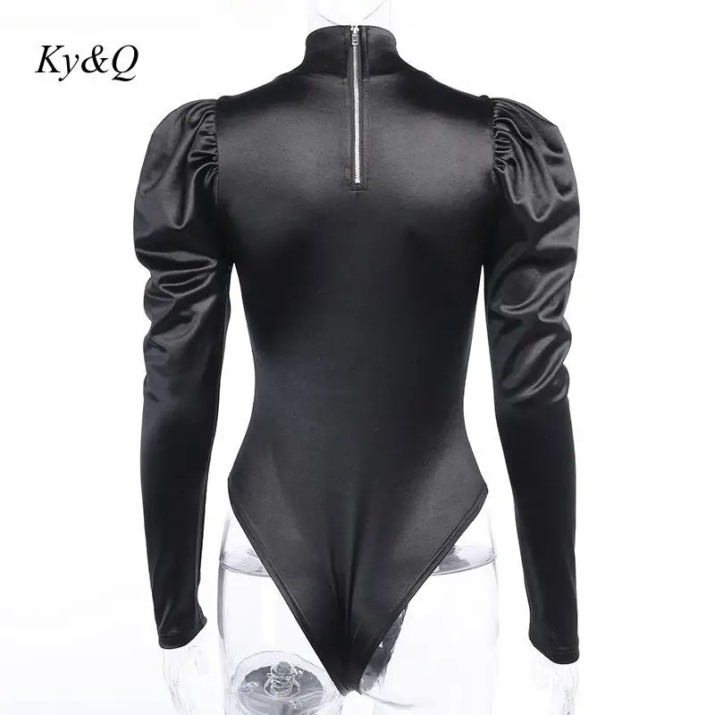 2021; Сезон весна; Пикантные женские черные пятна с высоким, плотно облегающим шею воротником Блузка боди с буффами на рукавах, боди Топы женские вечерние короткий комбинезон