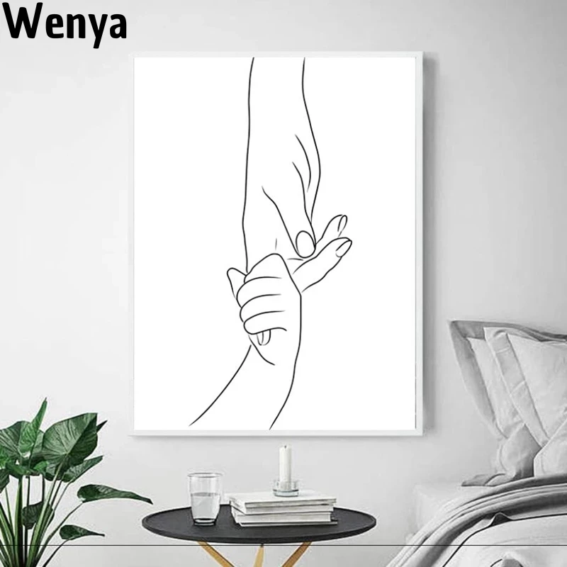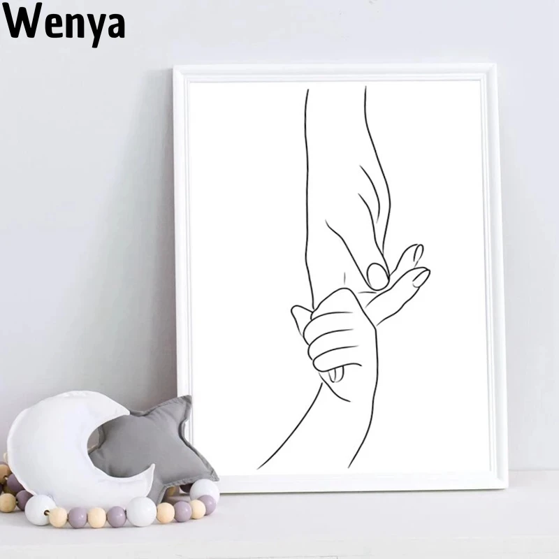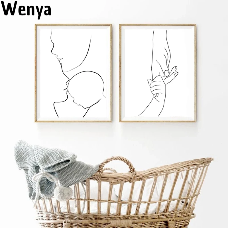 Семейный постер с любовью для новорожденных, мамы, руки, линия, искусство, холст, настенные картины, абстрактная живопись, принты, декор детской комнаты