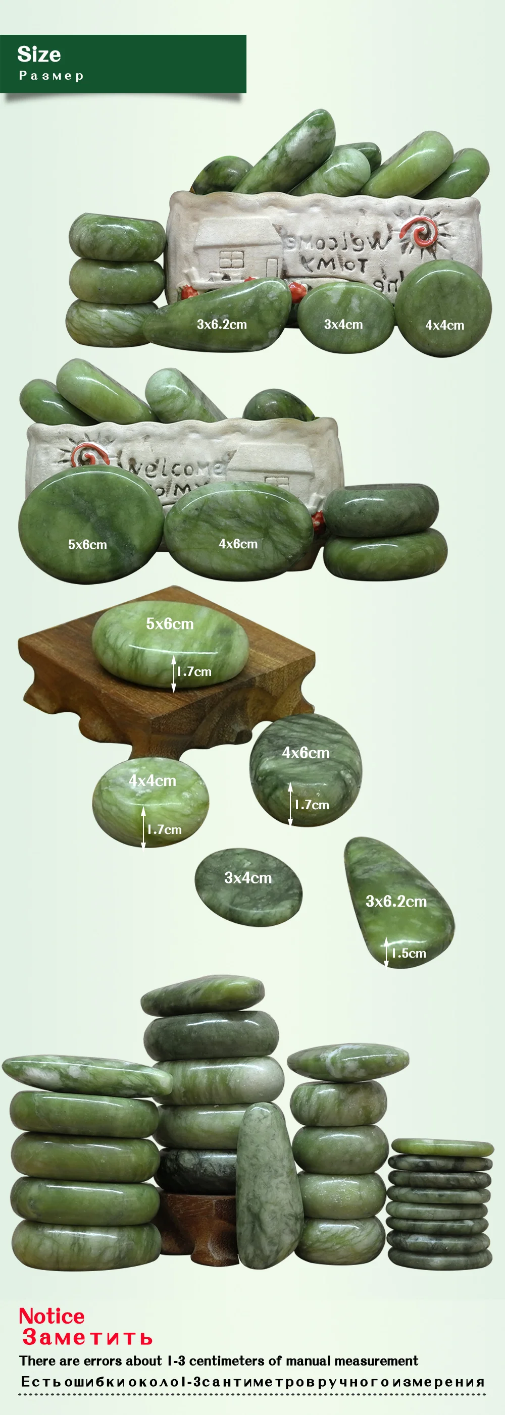 Очень хорошее качество и очень хорошо защищены. Размеры в порядке и разнообразны. С сумкой для нагрева камней произошла трещина и не нагревается. Я сообщил об этом продавцу, и вместе с некоторыми вещами, которые я заказал, он прислал мне новый. Настоятельно рекомендуется продавец, а также и его отношение для решения проблем. Полная уверенность. Спасибо. Спасибо.