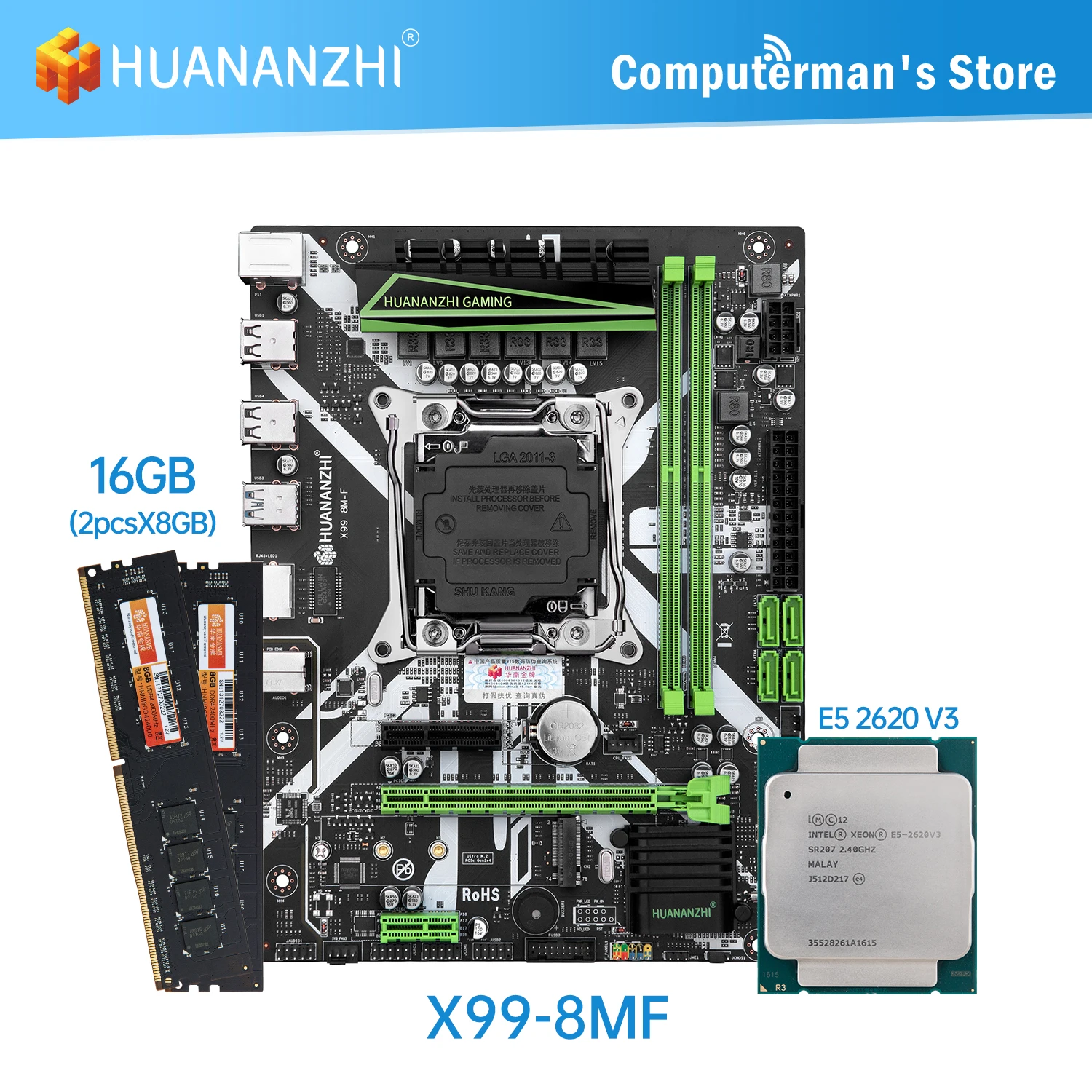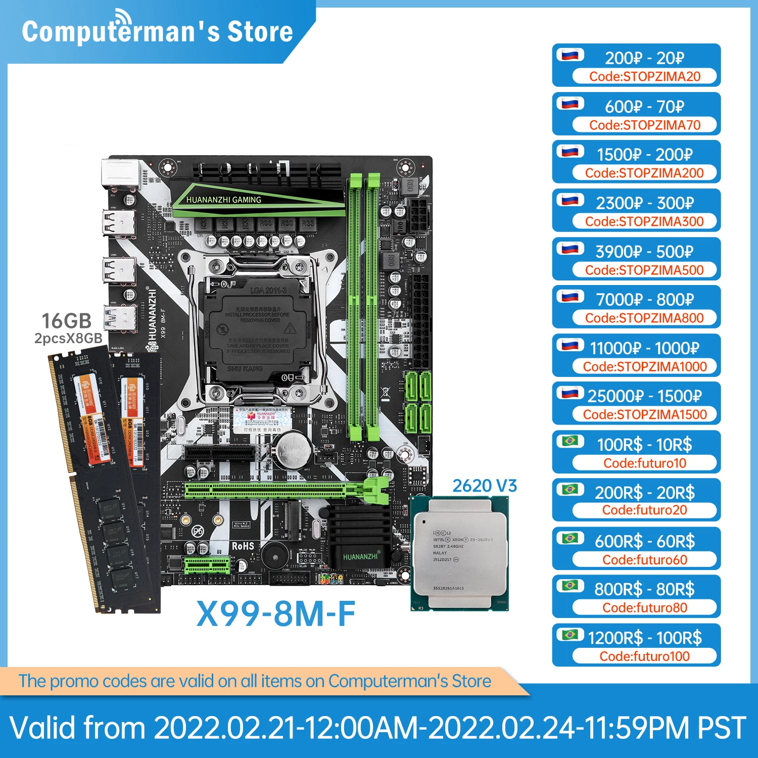 Материнская плата HUANANZHI X99, 8M F X99, комбинированный комплект, LGA 2011-3 ЦПУ Intel XEON E5 2620 V3, 2*8 ГБ DDR4, без ECC, 2400 МБ, 2 NVME USB