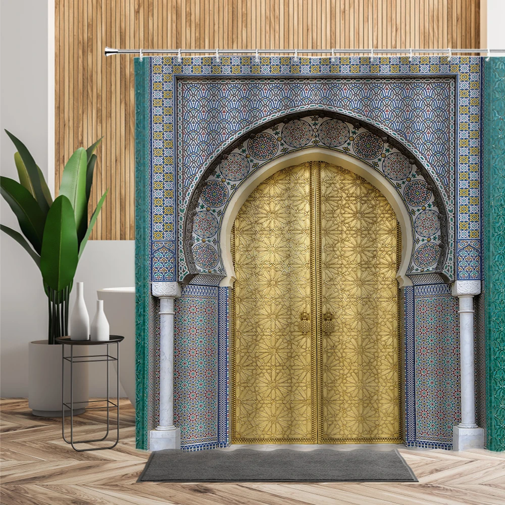 Марокканская занавеска для душа в ванную комнату, антикварный декор для ванной комнаты с аркой, 3d-геометрический дизайн, настенное покрытие, тканевая занавеска s