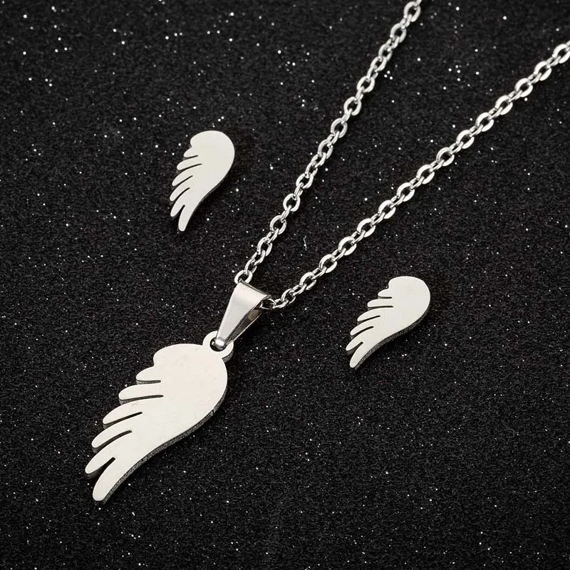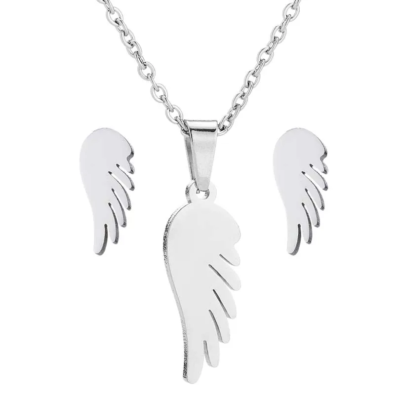 Jisensp в винтажном стиле Крылья Ангела комплект ювелирных изделий для женщин Девушка из нержавеющей стали ожерелье серьги-гвоздики модные аксессуары подарок