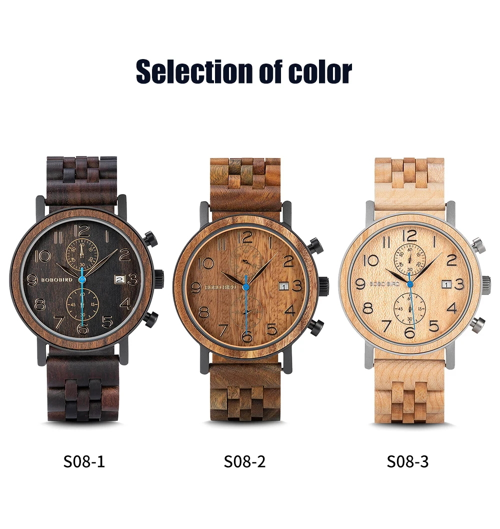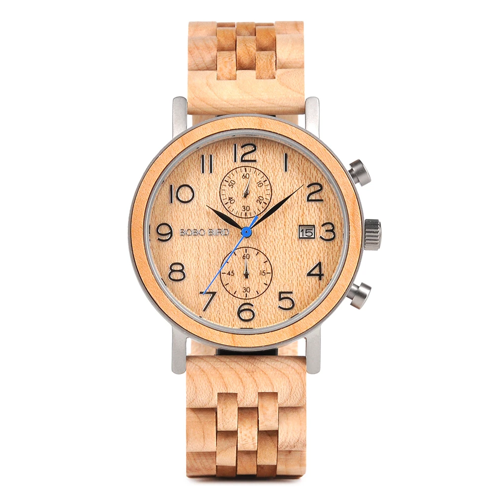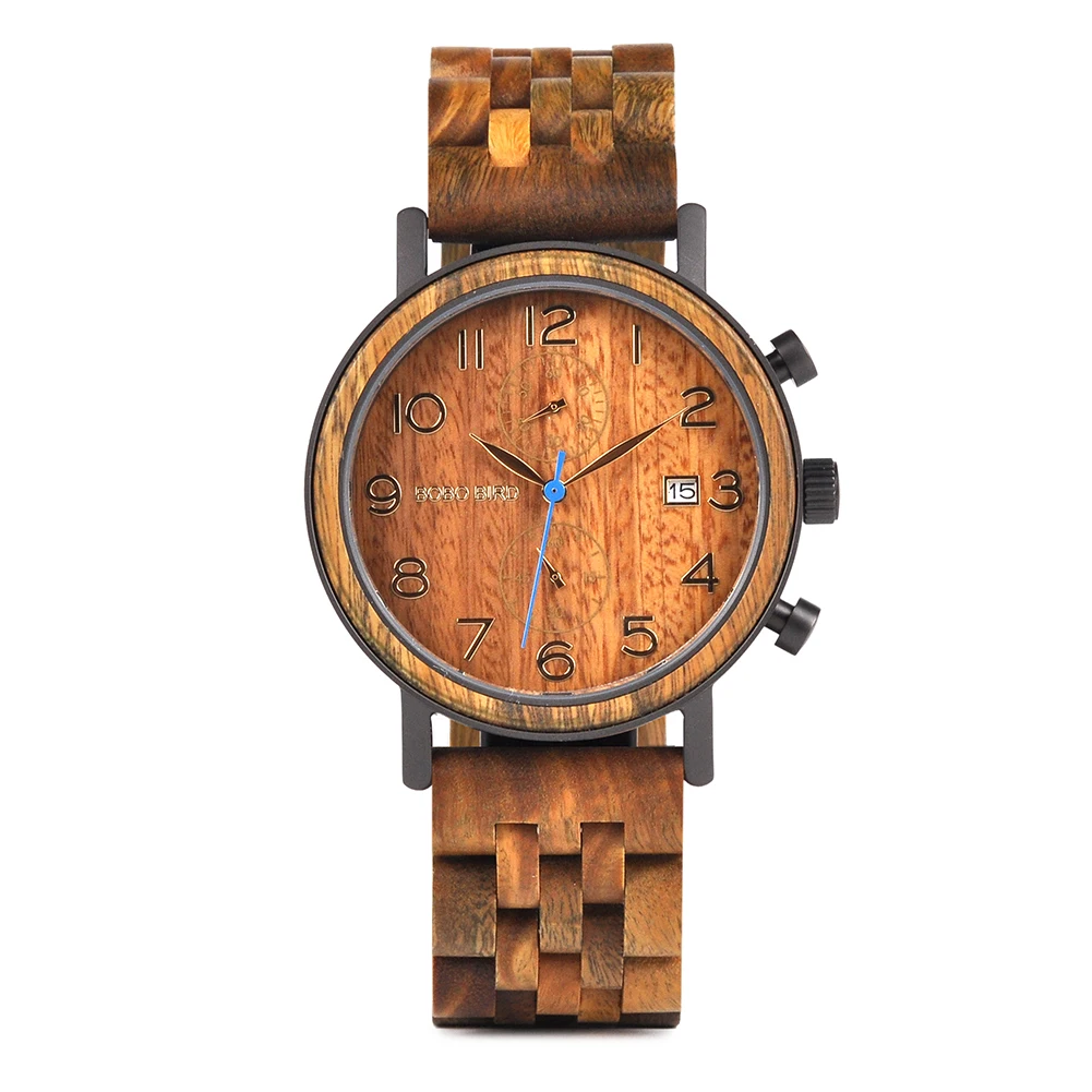 Мужские деревянные кварцевые часы Bobo Bird, мужские наручные часы с автоматической датой, кварцевые часы, мужские наручные часы с деревянным ремешком, мужские часы