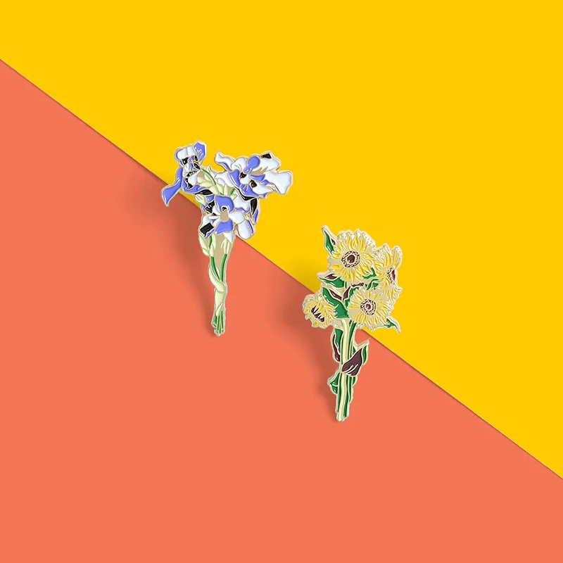 Значок на лацкан Ван Гог, брошь в виде подсолнуха, ириса, цветок, Металлическая Булавка для одежды, эмалевые значки для рюкзака, подарок для женщин