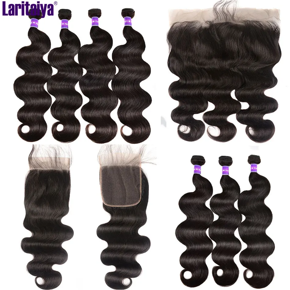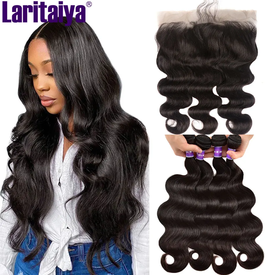 Бразильские волнистые волосы пряди с фронтальной 100% человеческие волосы 234 пряди с закрытием HD прозрачный кружевной фронтальной с пряди