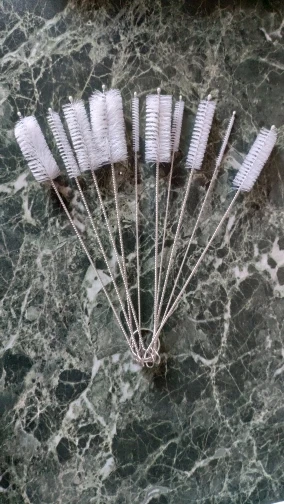 У мелких ёршиков проволока тонкая -гнёться. Плохо что щетинки начинаются не с самого начала, при чистке изогнутых трубок кончик упирается в изгиб и недочищается около одного см.