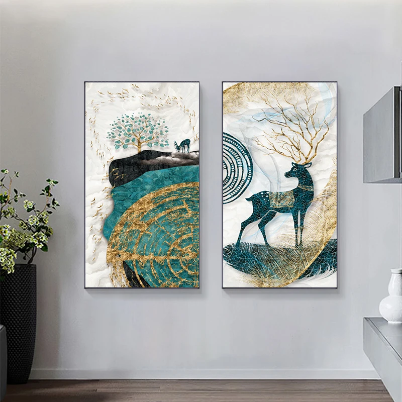 Абстрактная Золотая фольга, современный постер с изображением животных, лося, ландшафта, настенная живопись, внутренний декор, картина для гостиной, спальни