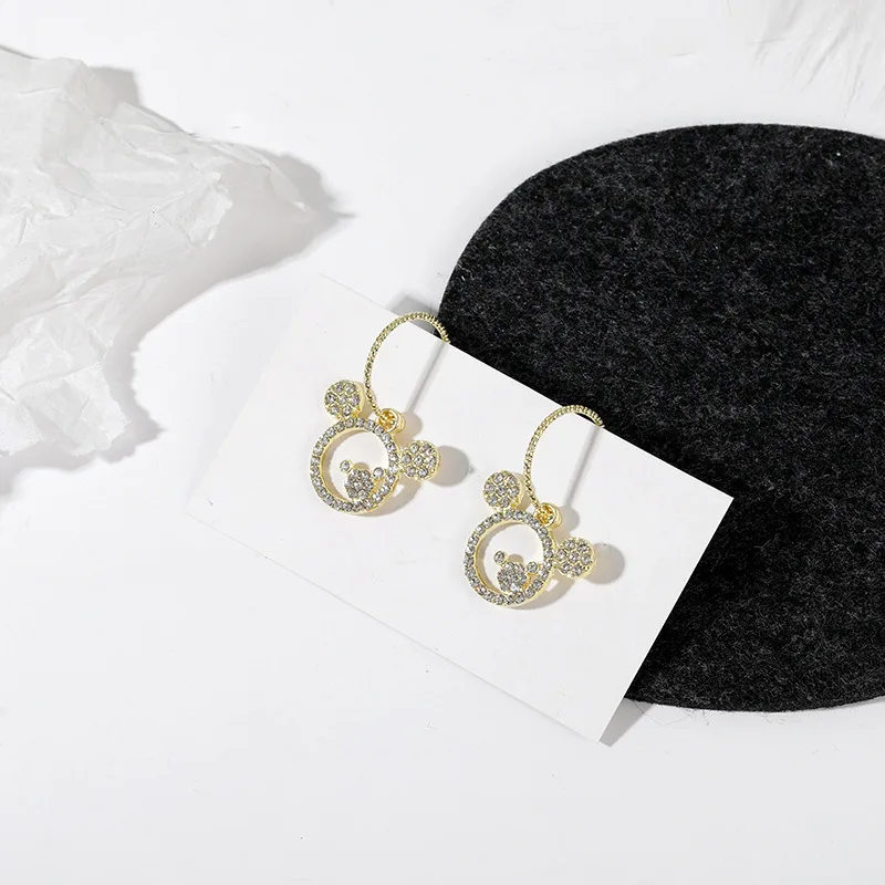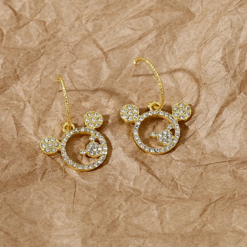 Симпатичные серьги Disney, ювелирные изделия с Микки Маусом для женщин, очаровательные аксессуары, оптовая продажа, модные Мультяшные серьги с кристаллами и Микки Маусом, подарок на день Святого Валентина