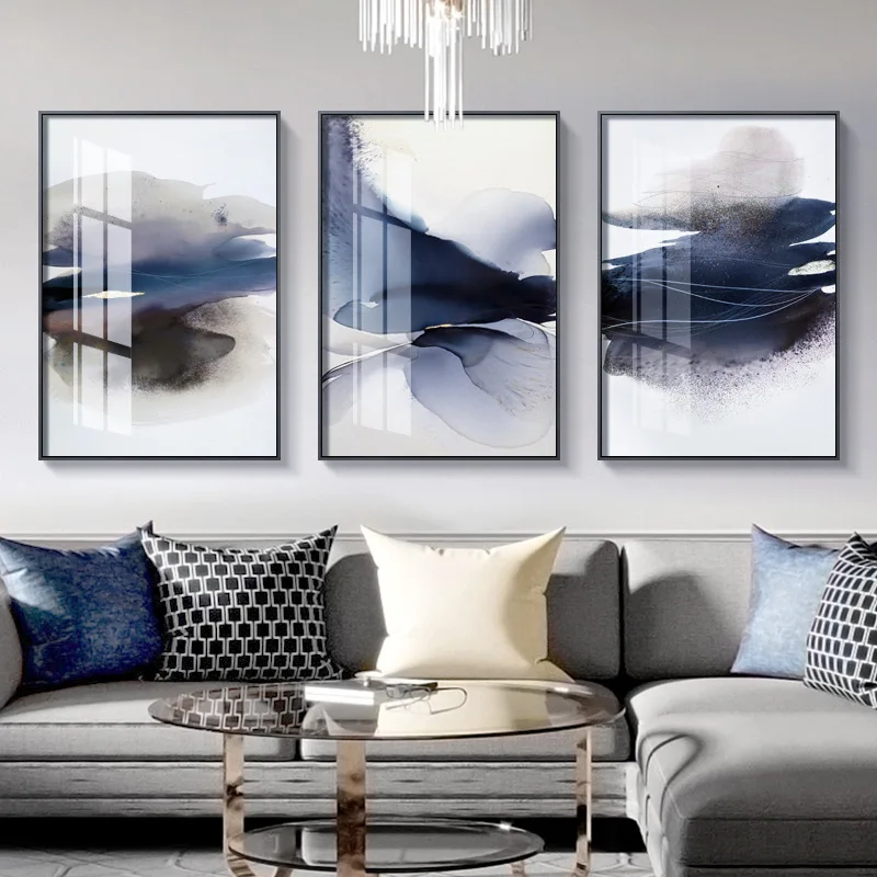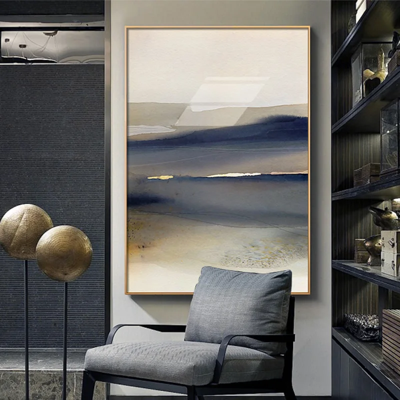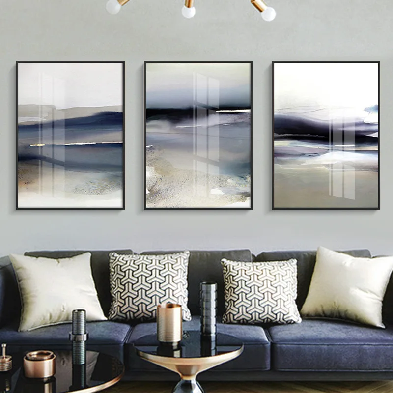 Спрей цвет абстрактные чернила пейзаж синий океан морские волны горный холст скандинавские картины Настенная картина плакат украшение для гостиной