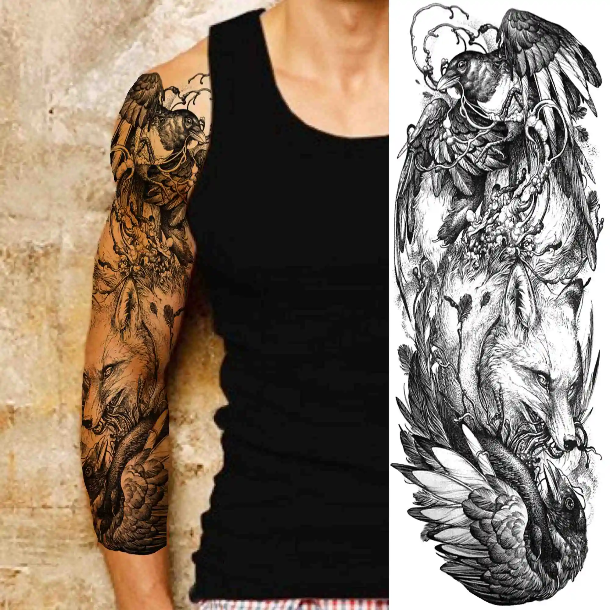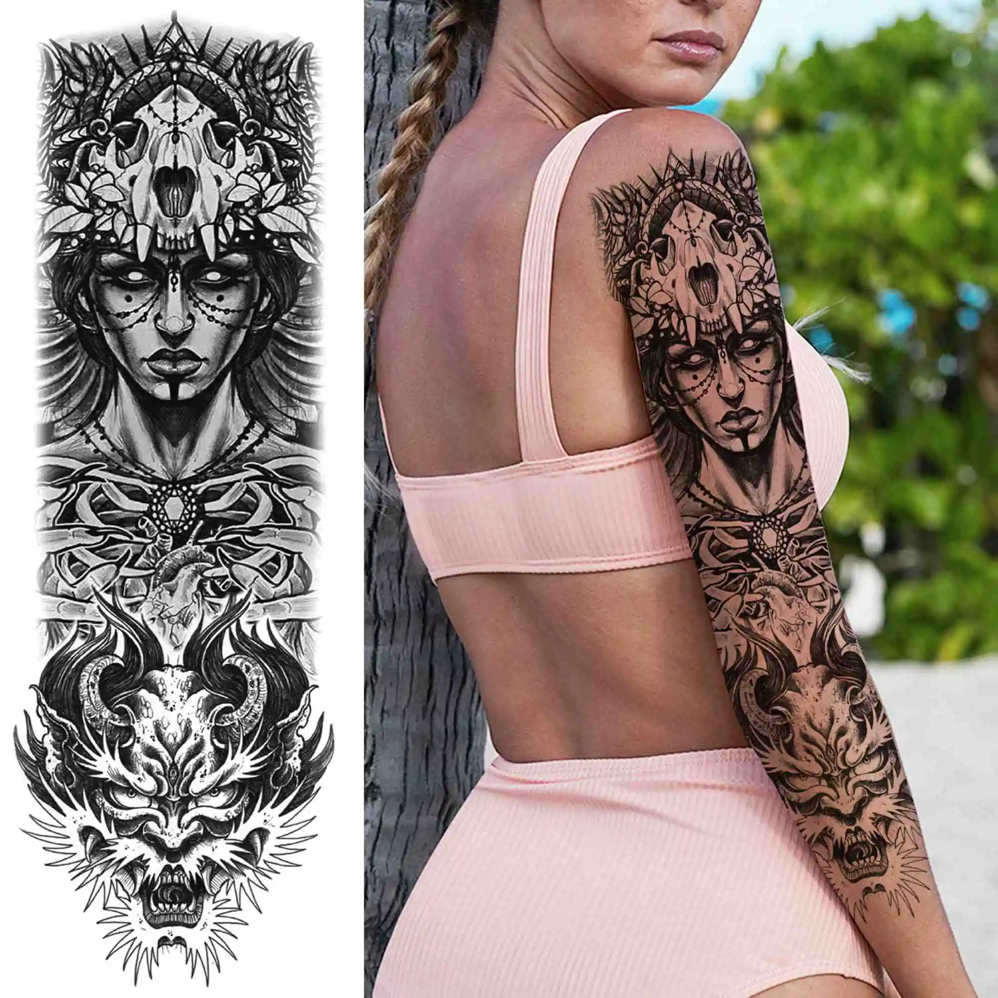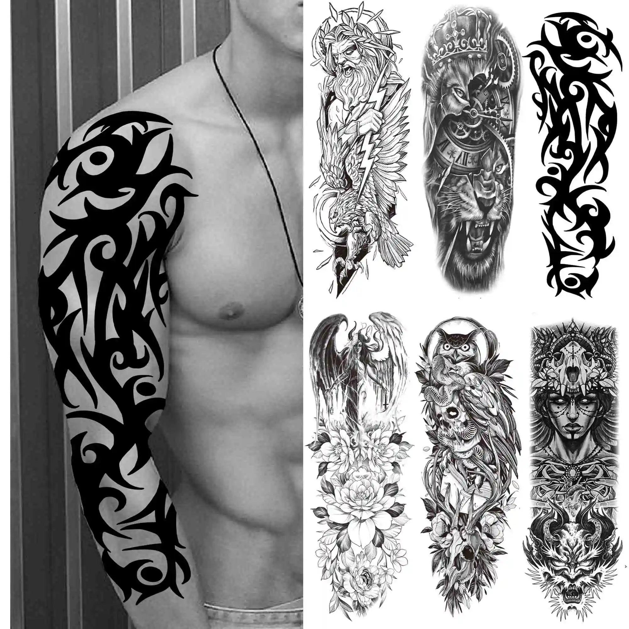 Этнический тотем, временные тату-рукава для мужчин, женщин, взрослые, искусственные цветы, Наплечные тату-наклейки, черные татуировки с черепом, большие руки