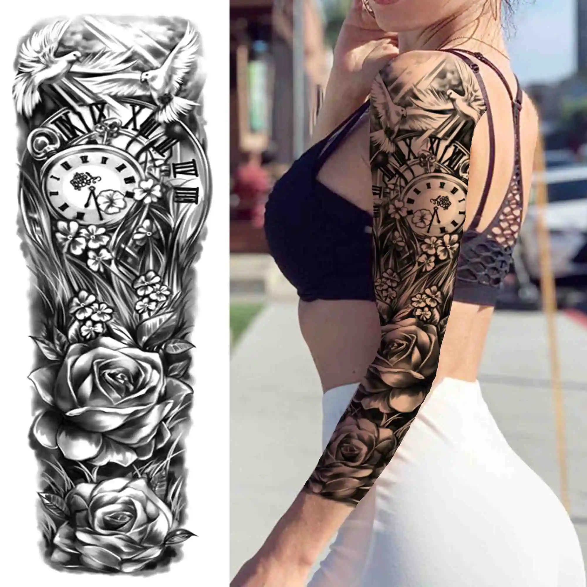 Татуировка Временная на всю руку для женщин и мужчин, наклейка-Тату...