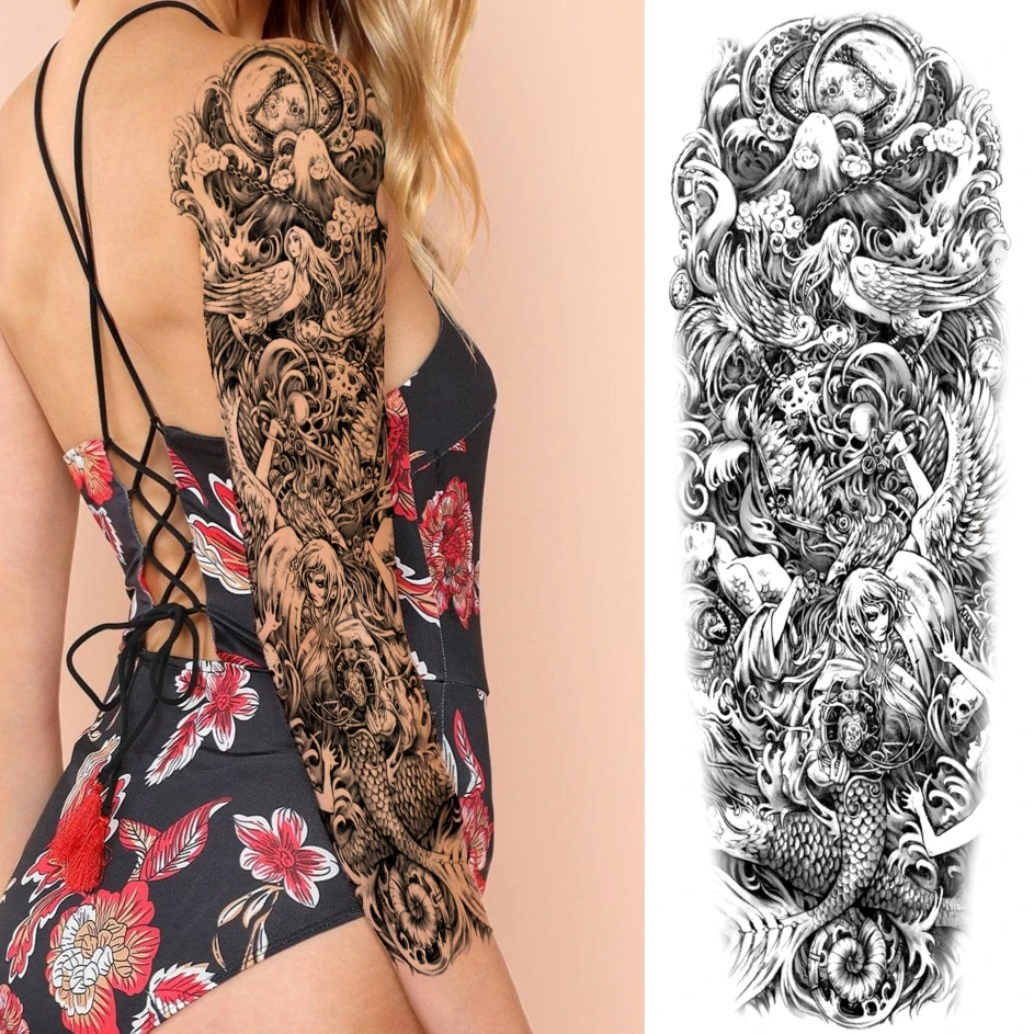 DIY Племенной Тотем на всю руку, временная татуировка, рукав для му...