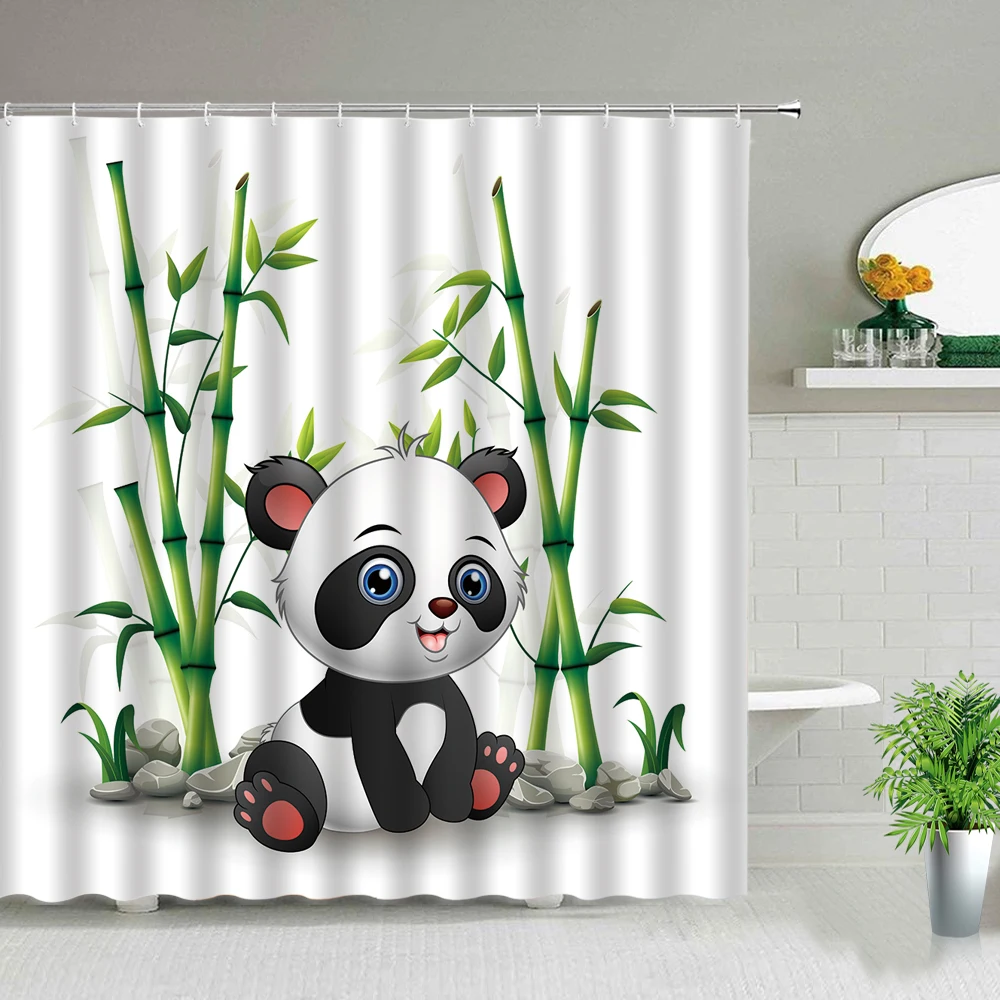 Классическая черно-белая занавеска для душа в виде милой панды с героями мультфильмов, Детские декоративные водонепроницаемые тканевые занавески из зеленого бамбука для ванной комнаты