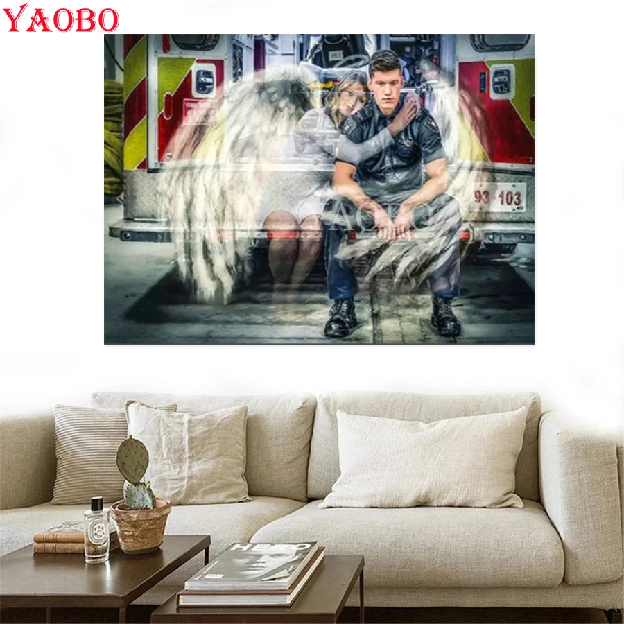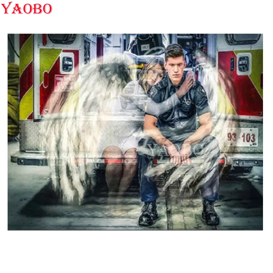 5D Diy Алмазная картина фантазия Ангел и пожарный Алмазная мозаика вышивка полностью круглая вышивка крестиком декор для комнаты девушки