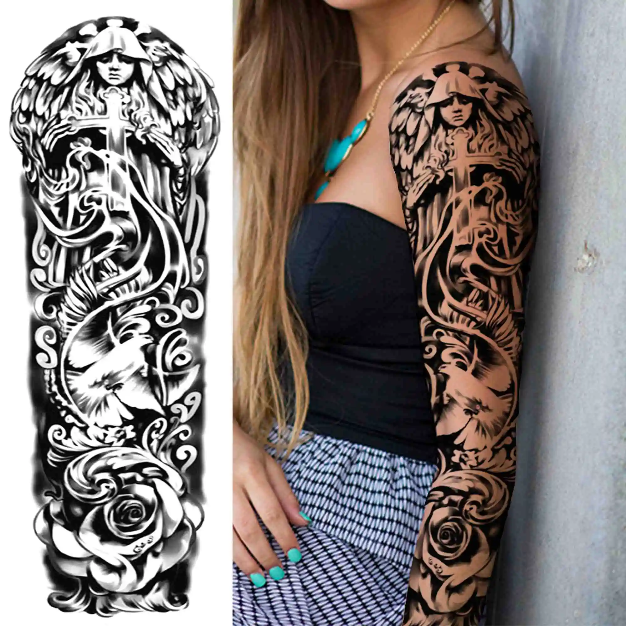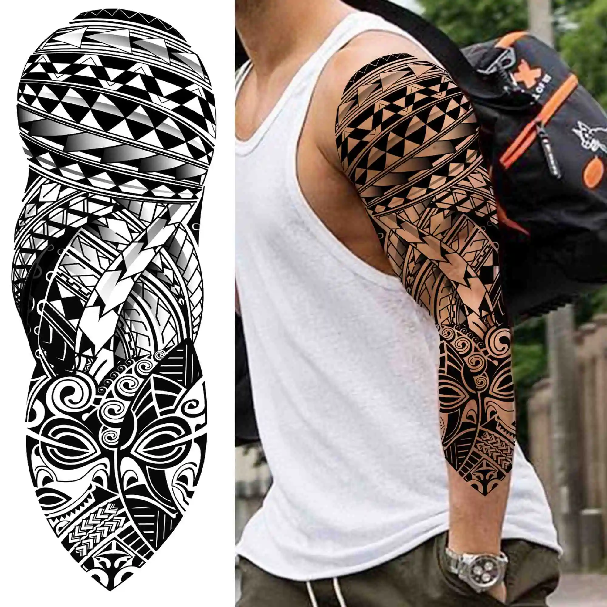 DIY Племенной Тотем на всю руку, временная татуировка, рукав для мужчин, женщин, мужчин, для взрослых, маори, Череп, татуировки, наклейки, Черная Женская, инструменты для макияжа