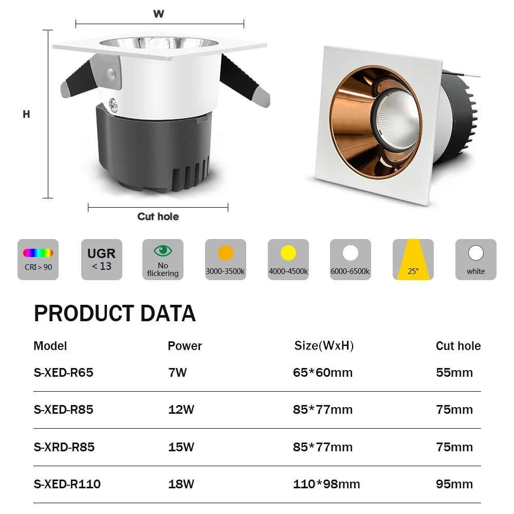 DBF антибликовый квадратный Точечный светильник 7 Вт 12 Вт 15 Вт 18 Вт черныйбелыйзолотистыйСеребристый отражатель настенный светильник с регулируемой яркостью